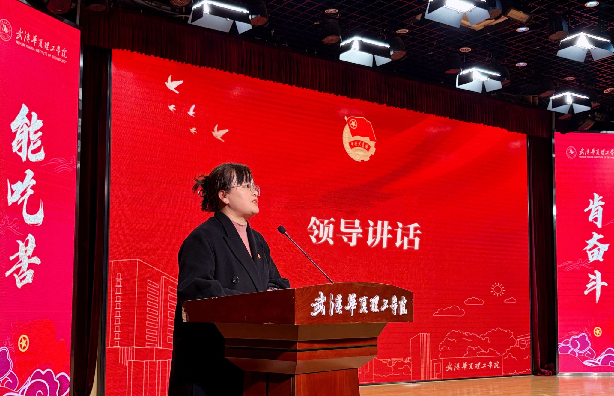 最后,校团委书记潘晶发表讲话。她首先向圆满完成培训并顺利结业的全体学员表示热烈祝贺,并向为本次培训辛勤付出的各位老师和工作人员致以诚挚感谢。潘书记深情回顾了本期“青马工程”培训中的点滴历程,充分肯定了学员们在学习过程中展现出的蓬勃朝气与锐意进取的精神风貌。她特别点赞大家在迎接评估工作中所体现出的强烈使命感与责任担当,并动情地说道:“你们用实际行动证明,新时代的青年骨干不仅拥有思想的高度,更饱含行动的温度。”同时,潘书记对全体学员提出三点殷切期望:一要以“学思践悟”为笔,将马克思主义理论的养分内化为思想自觉,在同龄人中赓续红色血脉、传递信仰力量;二要以“实干担当”为帆,带着培训中锤炼出的组织力与沟通力重返班团岗位,把迎评期间激发出的精神风貌延续到服务同学、建设校园的每一处细节之中;三要以“追求卓越”为梯,既深耕专业、练就过硬本领,又拓宽视野、回应时代之需,努力成长为“又红又专”的复合型人才,在强国建设的赛道上奋力跑出青春加速度。