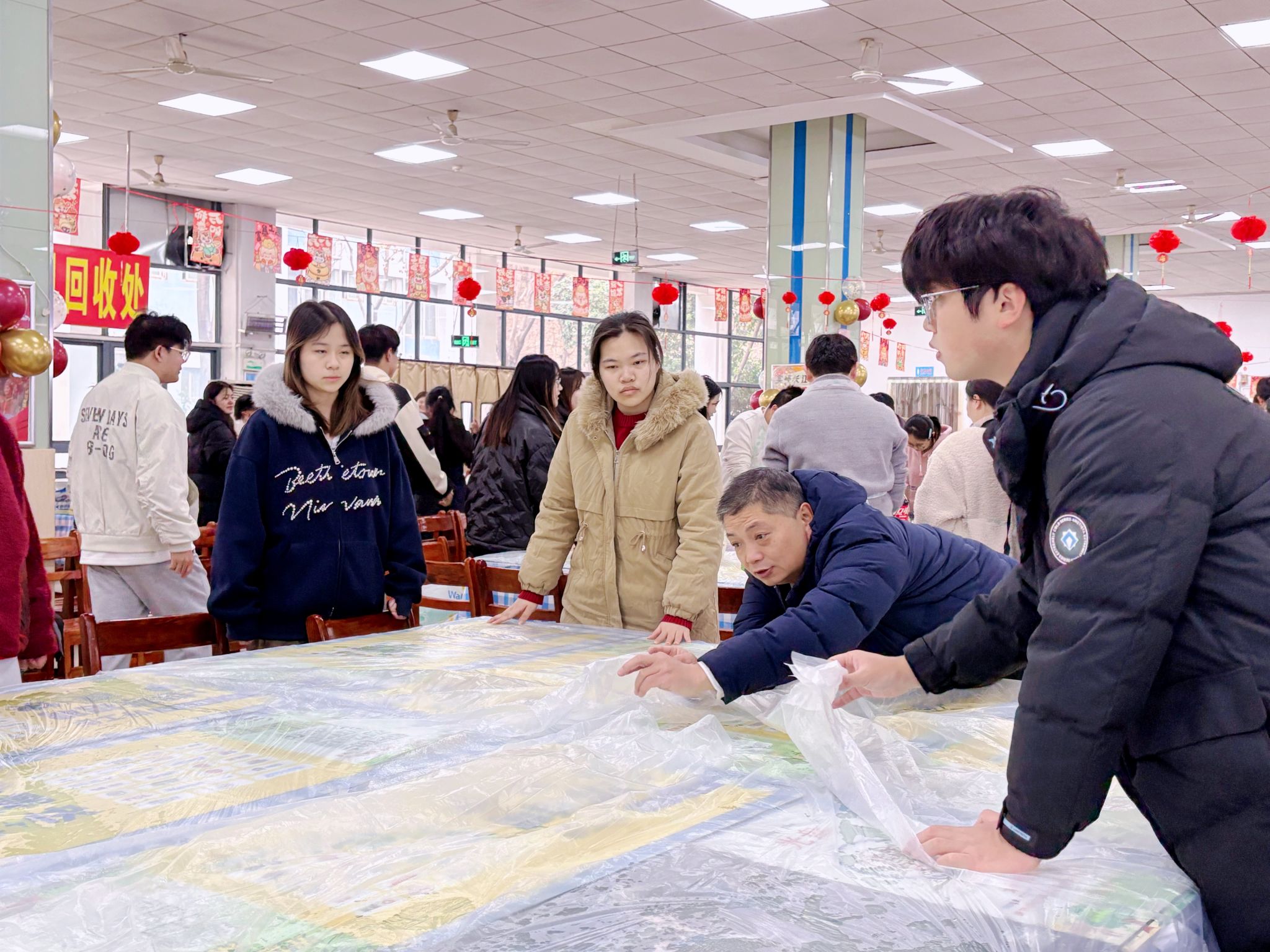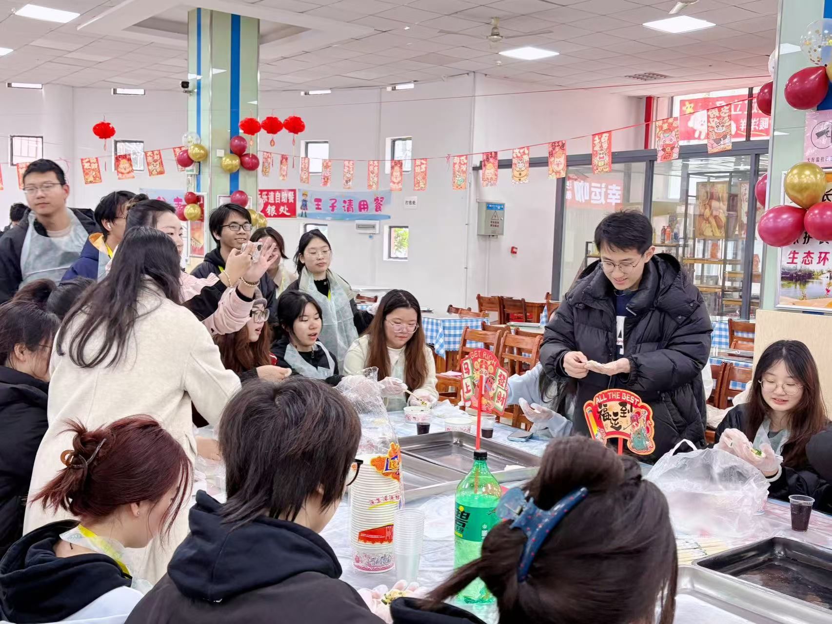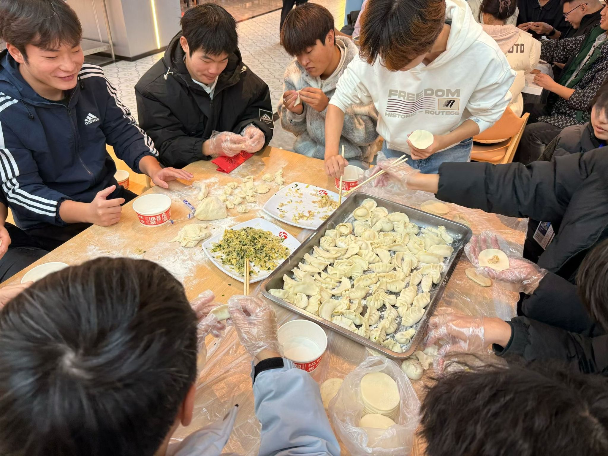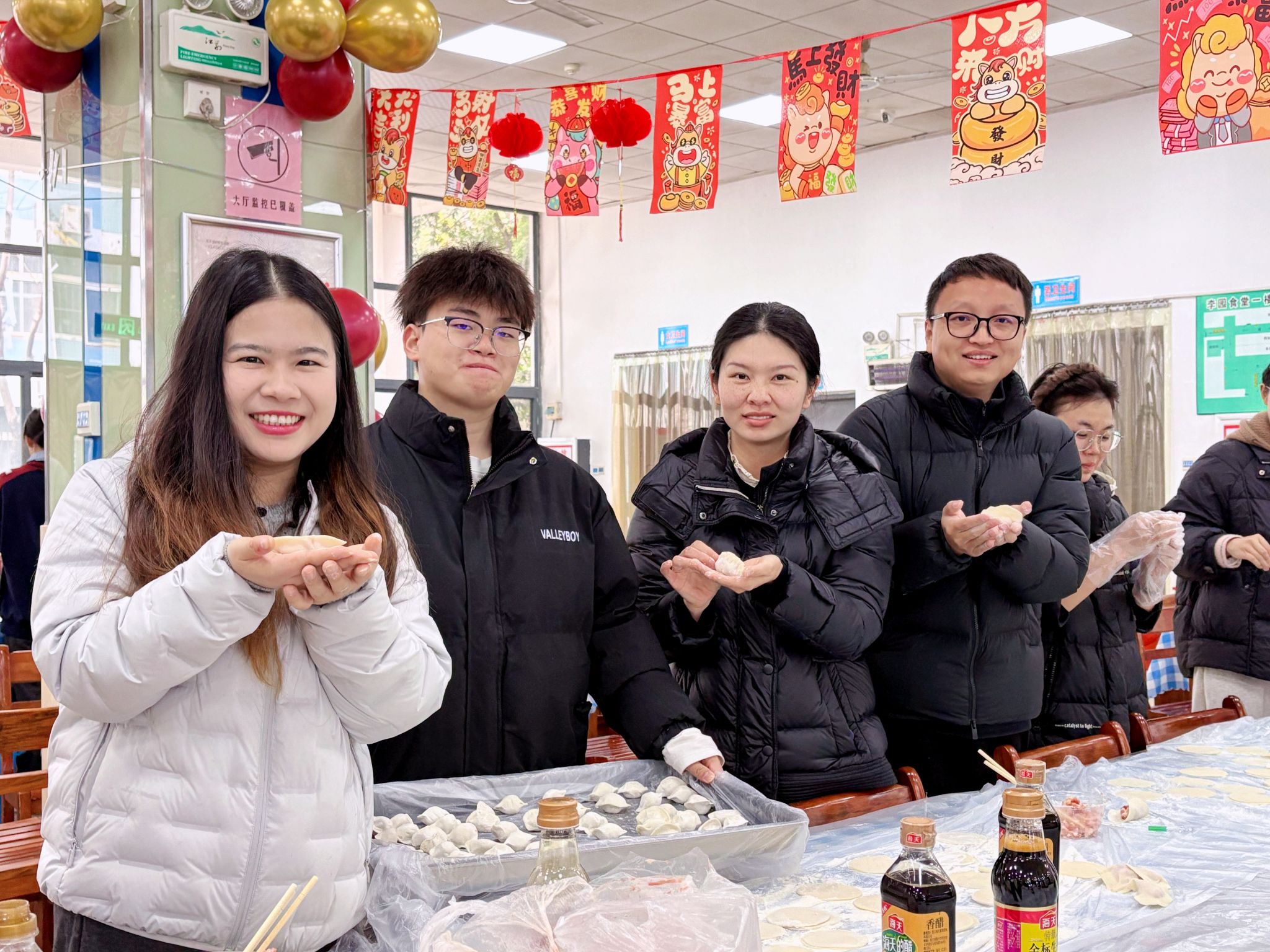 在梧桐湖校区,师生们在后勤食堂阿姨们的悉心指导下,亲自上手揉面、擀皮、调馅,从和面到包制全程参与,忙得不亦乐乎。大家一边学一边做,面粉沾在鼻尖、笑声回荡在食堂,现场洋溢着浓浓的烟火气与节日温情。不少同学感慨:“原来一个饺子背后有这么多讲究,自己动手才真正体会到‘家’的味道。”