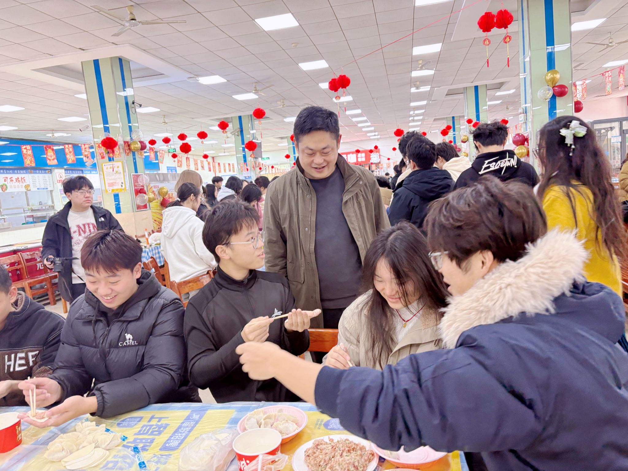 师生们围坐在一起品尝自己亲手包的饺子,分享着制作过程中的趣事,欢声笑语间,浓浓的温情在校园里流淌。