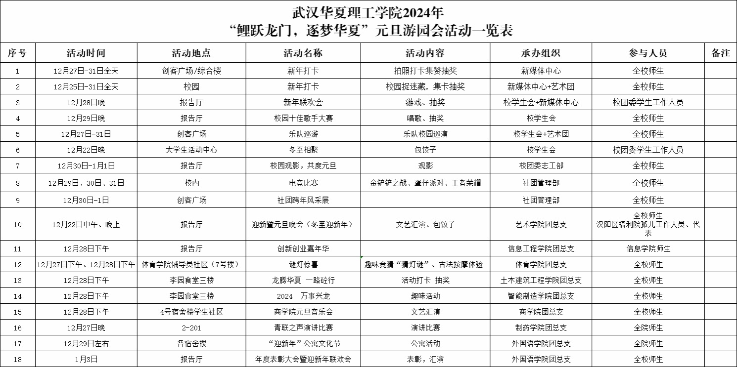 1.本次迎新年系列活动为期10天,内容详见《beat365官方网站2024年“鲤跃龙门,逐梦华夏”迎新年系列活动一览表》;