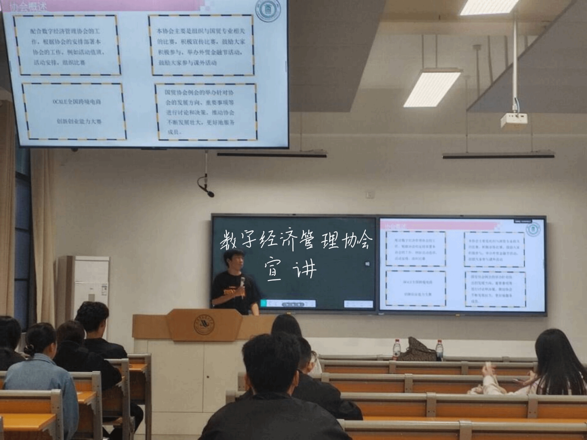 为保障数字经济管理协会工作的连续性与创新性,致力于推动创新创业类赛事的开展,为每一个对创新创业类赛事感兴趣的同学们提供一个沟通交流的平台。10月18日,在梧桐湖校区成功开展专题宣讲活动,活动以“协会背景+全面解读+互动答疑”的形式,搭建起数字经济交流合作的优质平台!