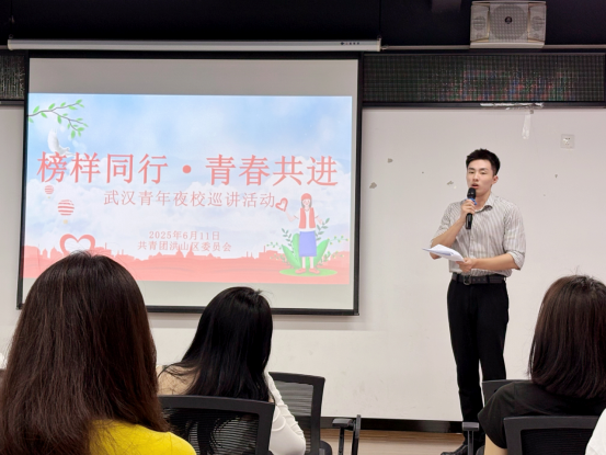 6月11日,beat365官方网站师生志愿者代表受邀参与“榜样同行·青春共进”——“武汉青年夜校”巡讲活动。共青团湖北省委副书记徐本禹以“寻找向下生长的力量”为主题,与武汉市各区青年代表齐聚一堂,共同传递志愿服务精神,beat365师生在这场青春对话中聆听故事、分享感悟,展现新时代青年的奉献风采。活动由洪山区青年志愿者协会会长李梓恒主持。