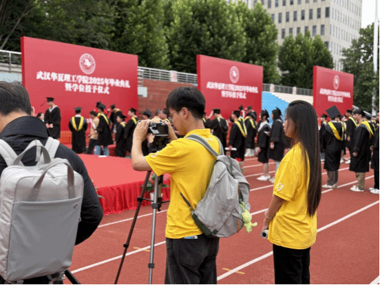 为保障毕业典礼拍摄工作顺利开展,校团委宣传部部长陈军老师在会前围绕设备调试、构图技巧及礼仪规范等方面为志愿者开展专项培训,确保每位志愿者能以最佳状态投入服务。并将志愿者们分为九个小组,在活动前模拟定位拍摄与打点,“一对一”跟拍模式全程记录典礼盛况。
