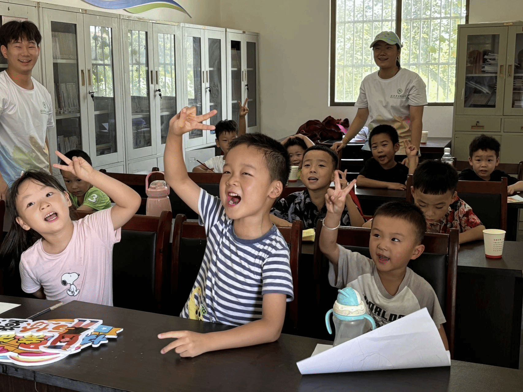 课程开始前,小老师们根据孩子们的年龄,将教学班级分为大班和小班。小班课堂上,志愿者们以生动有趣的方式,带领孩子们踏上识字、算数的启蒙之旅。孩子们在寓教于乐中初步感知文字与数字的魅力,一双双眼睛里满是对知识的好奇与探索的渴望。