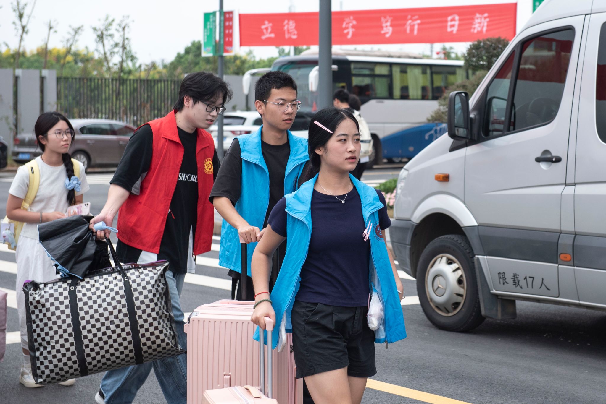为切实提升新生及家长的报到体验,学校在汉口站、武汉站、武昌站、鄂州站、葛店南站等交通枢纽设立迎新接驳点,图书馆老师们带着84名接站志愿者全天候值守,实行多班次循环发车,确保新生“出车门、进校门”,实现无缝衔接的一站式便捷服务。无论烈日炎炎,还是骤雨突袭,师生们始终坚守岗位,用温暖的笑容和贴心的引导,让远道而来的学子第一时间感受到“家”的归属感。