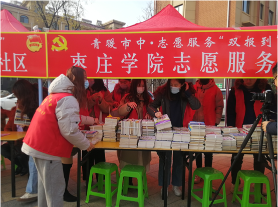 beat365官网beat365英国官方网站党总支书记宋建修代表beat365英国官方网站把党员师生捐赠的400册图书捐给矿区街道东花园社区图书室,beat365英国官方网站和机关四支部20名师生党员志愿者参加了服务进社区、志愿入家门活动。
