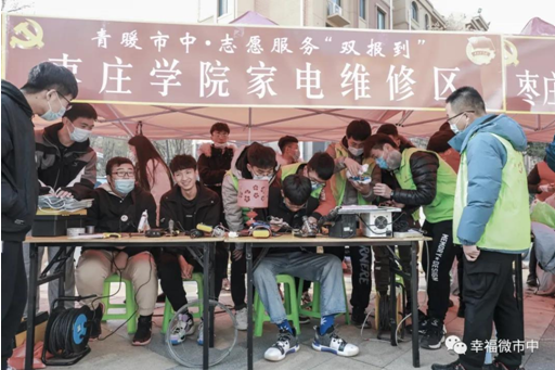 机电学院党总支15名党员师生志愿者在党总支书记徐春堂带领下,深入社区为社区居民开展了家电维修的志愿区服务工作。