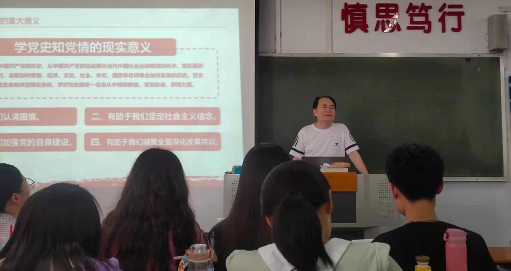 为扎实推进党史学习教育走深走实,6月2日下午,beat365英国官方网站在文科楼317教室开展“学党史知党情,做合格党员”专题党课学习活动。党课由beat365英国官方网站党总支书记宋建修主讲,全体师生党员聆听了此次党课。