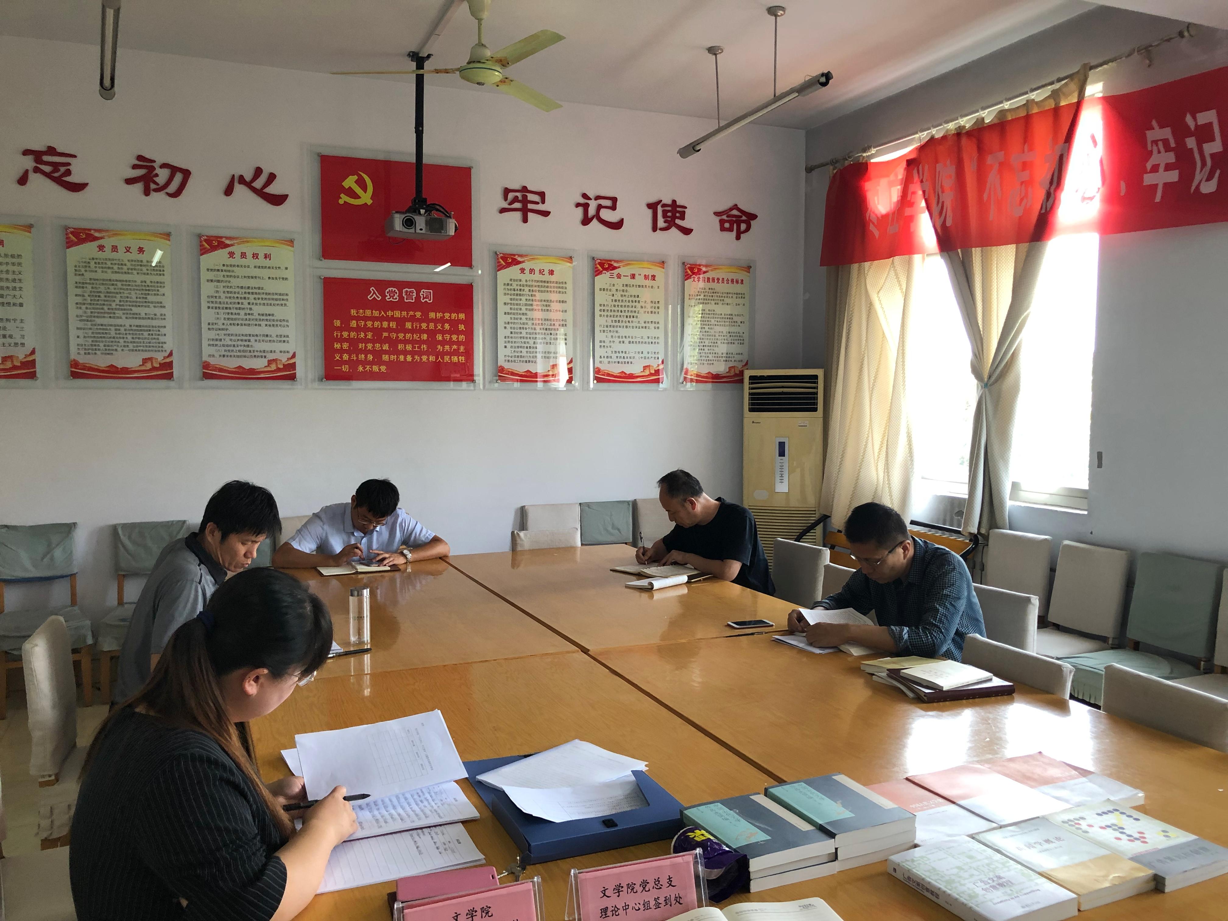9月26日下午,beat365英国官方网站党总支理论学习中心组开展“不忘初心、牢记使命”第一次主题教育交流研讨会,专题学习研讨《习近平关于“不忘初心、牢记使命”重要论述选编》中《坚定不移推进全面从严治党》和《推进党的建设新的伟大工程要一以贯之》,《习近平新时代中国特色社会主义思想学习纲要》中《用习近平新时代中国特色社会主义思想武装起来 夺取新时代中国特色社会主义伟大胜利 实现中华民族伟大复兴》等内容。史大丰同志主持并带领大家学习了三个材料。