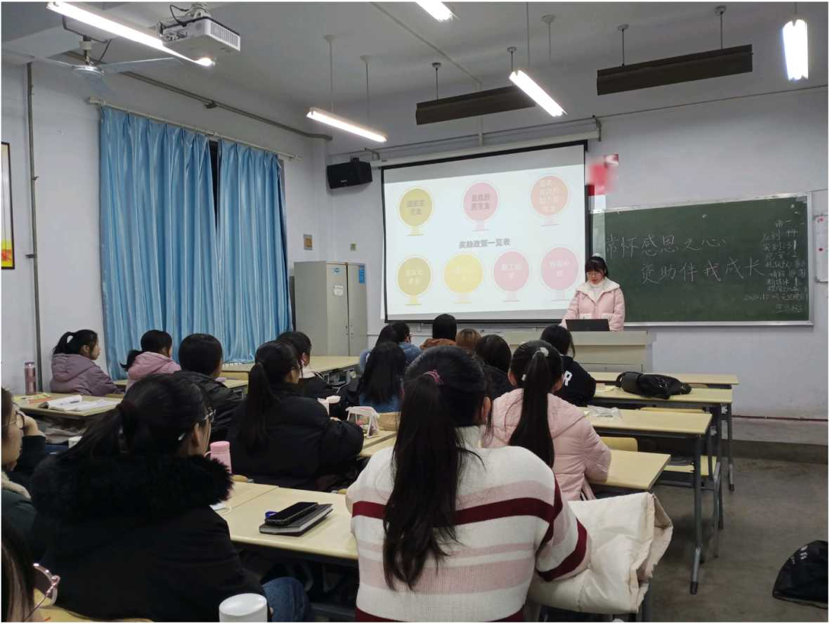 为认真贯彻落实学生资助政策,充分发挥资助育人的功能。12月3日,beat365英国官方网站各班级开展“常怀感恩之心,资助伴我成长”资助政策宣讲主题班会。曾获得学院“资助宣传大使”和“beat365英国官方网站十大励志榜样”的同学们为各班级进行资助政策解读和宣讲,各班学生到场学习。