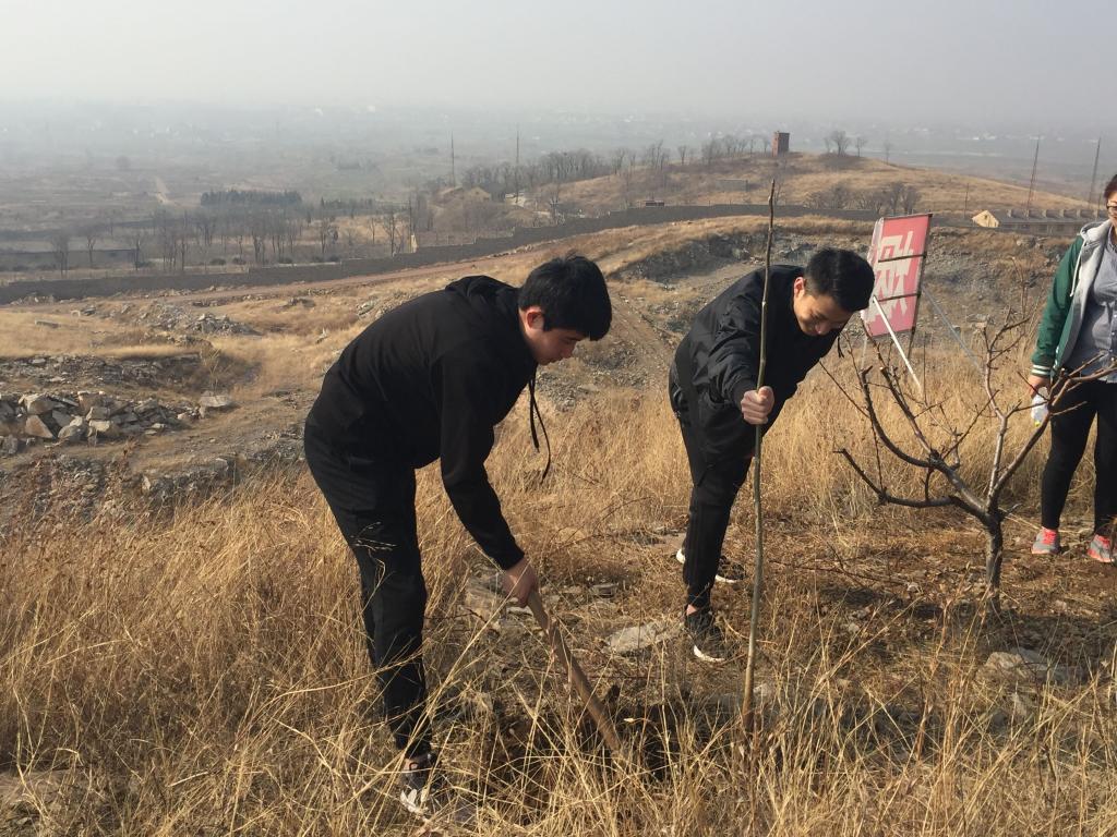 初春的寒意挡不住同学们劳动的热情,大家拿好工具,扛起树苗,列队整齐地步入栽种区。负责植树的师傅首先向同学们讲解了栽种的基本方法和技巧,并进行现场示范,然后同学们三两一组分工协作,挥锹铲土、栽植培土。植树现场,大家干劲十足,齐心栽种多棵核桃树苗,为助推环境绿化,建设美丽枣庄,贡献自己的力量。