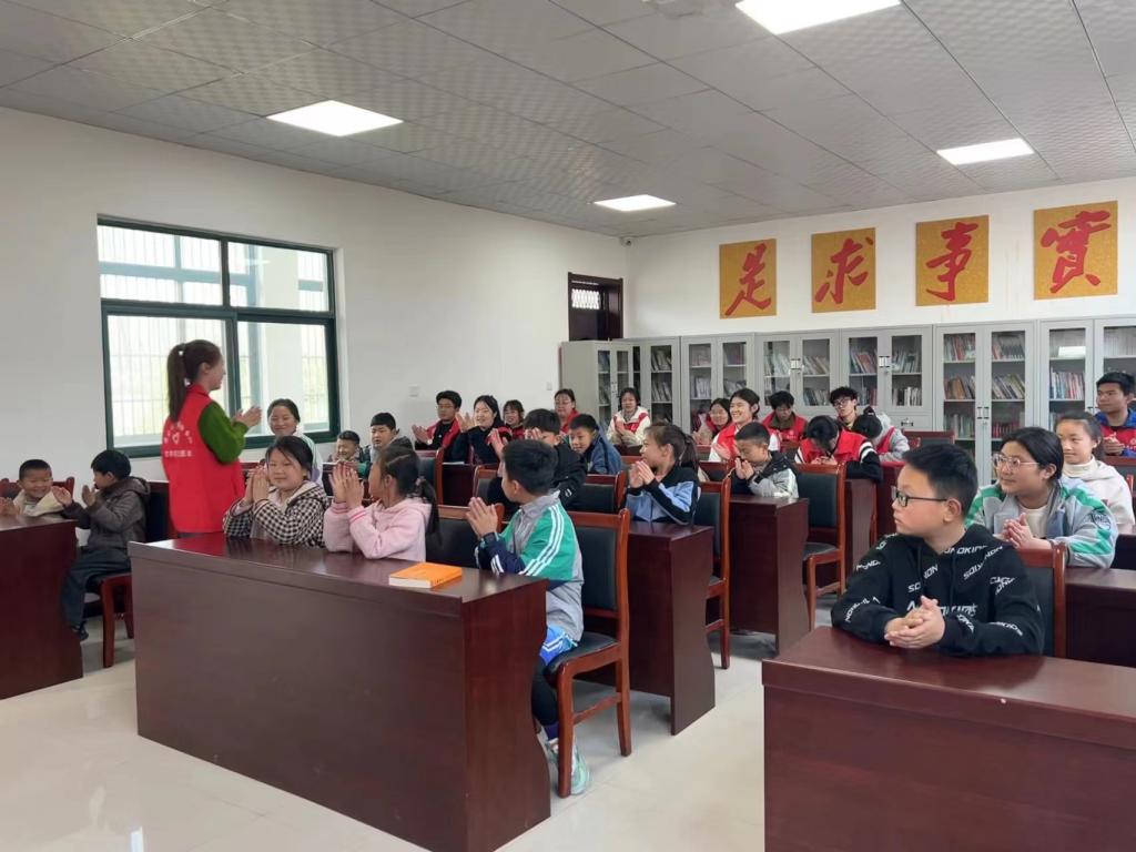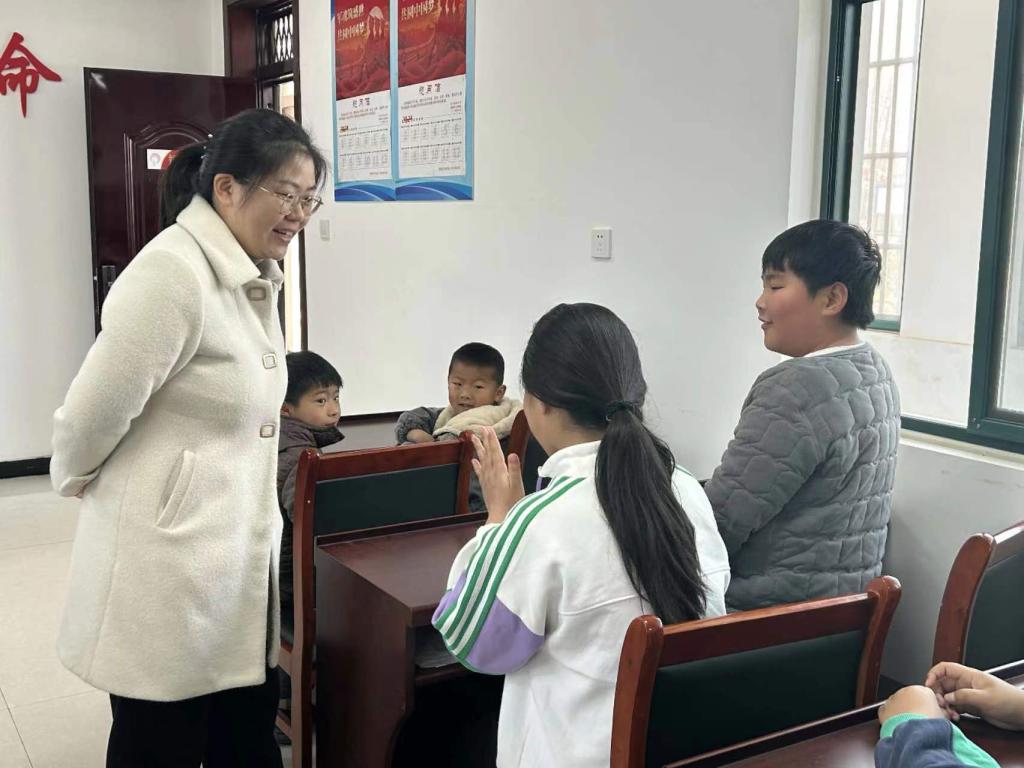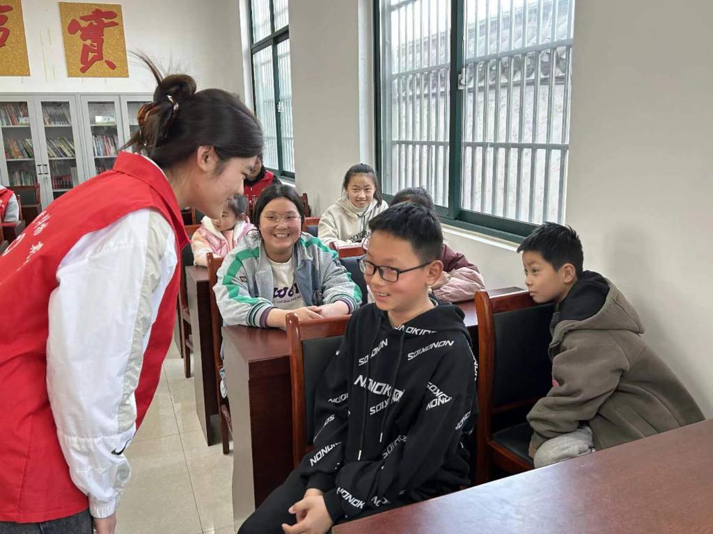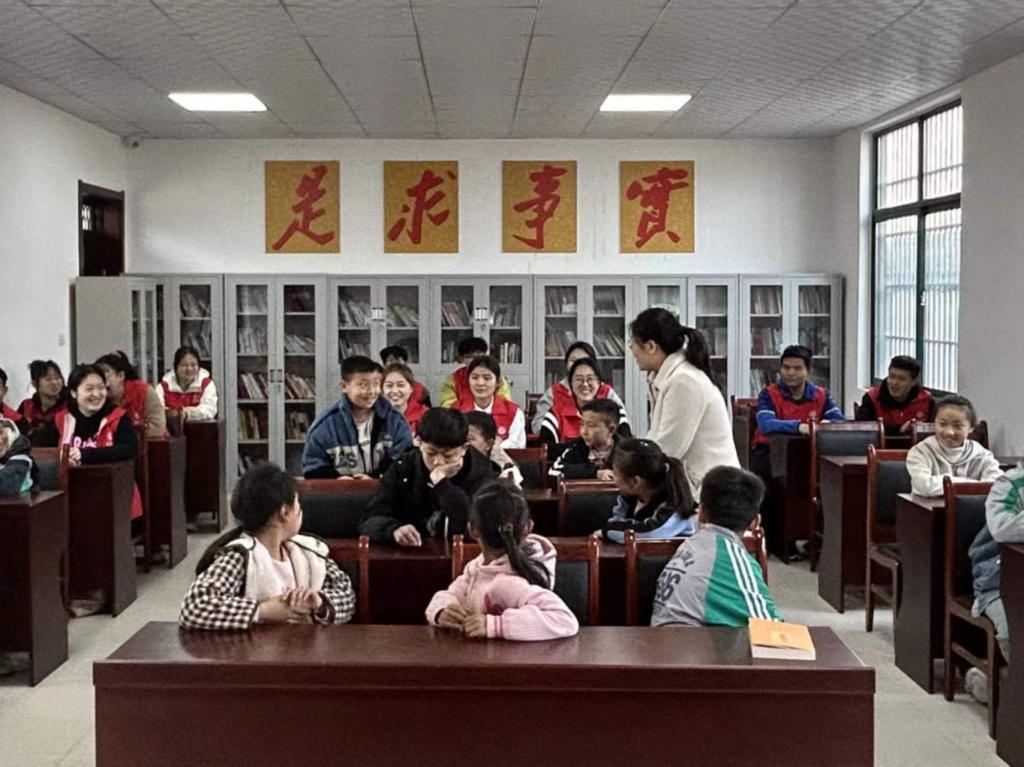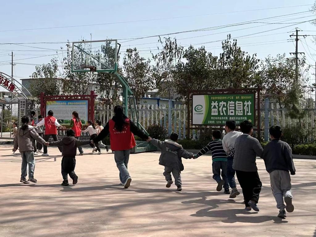 在薛城区团区委副书记孙萍、沙沟镇团委书记黄荣丽等的指导下,志愿者们和村里的孩子们一起进行了“诵读传古韵,经典润人心”经典诵读活动,一同感受中华文化的博大精深。在“大手拉小手,爱心助成长”课后辅导中,志愿者们采取结对方式为孩子们答疑解惑,帮助孩子们树立正确的学习态度、培养良好的学习习惯。在寓言故事分享环节,通过生动有趣的故事,孩子们在轻松愉快的氛围中领略到生活的智慧和人生的真谛。志愿者和孩子们还一同进行了“切水果”“捕鱼大赛”等娱乐活动,现场其乐融融。