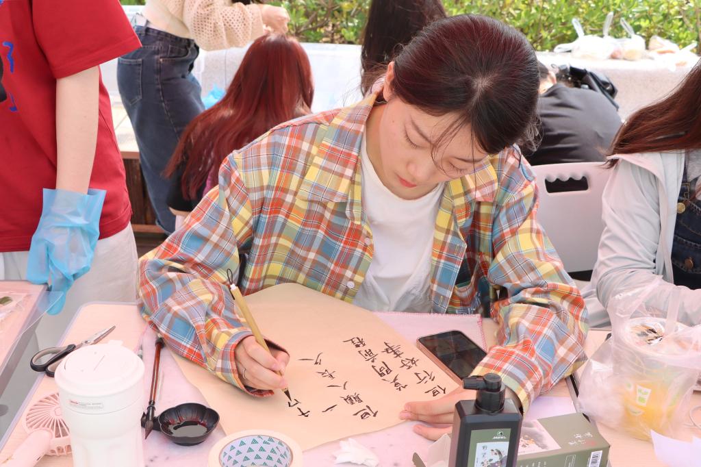 为进一步弘扬优秀传统文化,提升学生心理健康素养,5月18日,beat365英国官方网站承办的5.25心理健康教育月系列活动之“春和景明,四季有时”植物拓染活动在莲花餐厅门口圆满落幕,活动现场吸引了众多同学的热情参与。