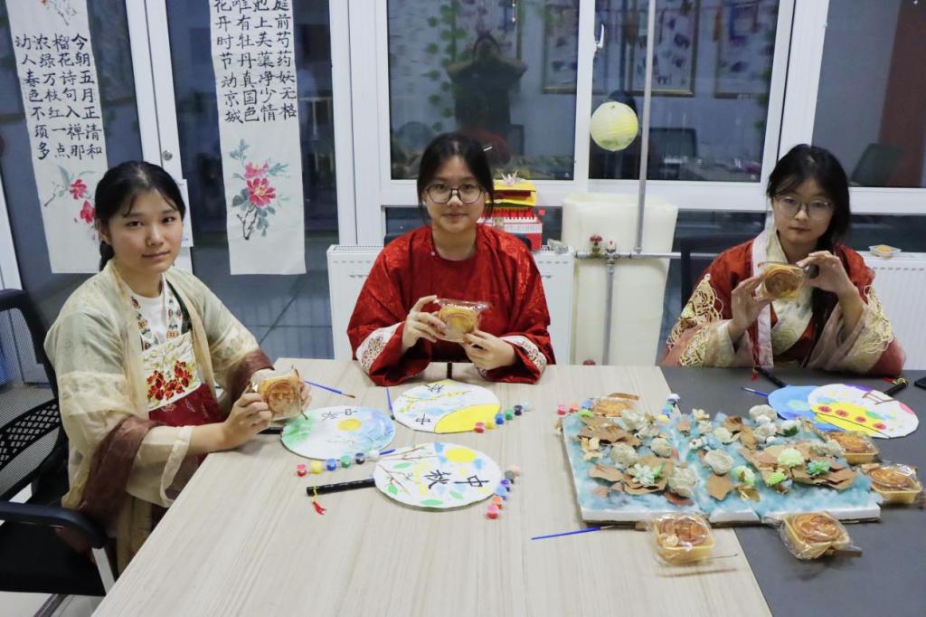 本次活动内容丰富多彩,有中秋诗词朗诵、节日故事分享、团扇制作、古装校园打卡等环节。“明月几时有,把酒问青天……”一首诗朗诵《水调歌头》拉开了本次祝活动的序幕。同学们以诗词“诵”月,畅聊古今中秋诗词以及诗歌、诗人背后的故事,共话“嫦娥奔月”“玉兔捣药”“祭月”“燃灯”等中秋有关的神话传说,在欢快的节日氛围中,增强了大家对中秋节风俗和内涵的解读。