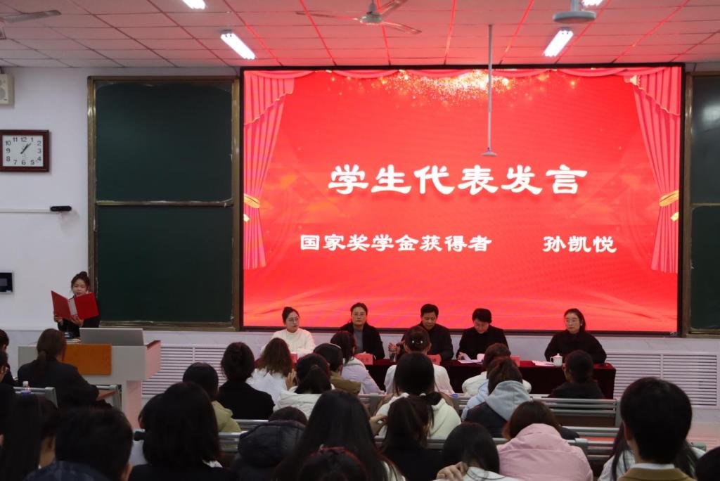 会上,华莹宣读了《beat365英国官方网站关于表彰“以榜样树学风”2024年度先进集体、先进个人表彰决定》,依次为受表彰的先进集体和优秀个人颁奖,国家奖学金获得者孙凯悦、国家励志奖学金获得者孙康绮依次上台发言,通过分享学习经验及生活感悟,激励同学们积极向上,奋发图强。