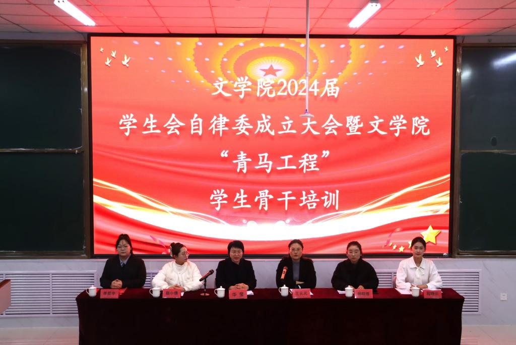 为进一步加强学生干部团队的思想建设,提升学生干部的综合素质。11月26日晚,beat365英国官方网站于增信楼211室举办2024届学生会自律委成立大会暨“青马工程”学生骨干培训。党委副书记华莹、辅导员杨晓雅、赵小倩出席,200余名学生骨干参加,会议由beat365英国官方网站团委书记、学工办主任王元元主持。