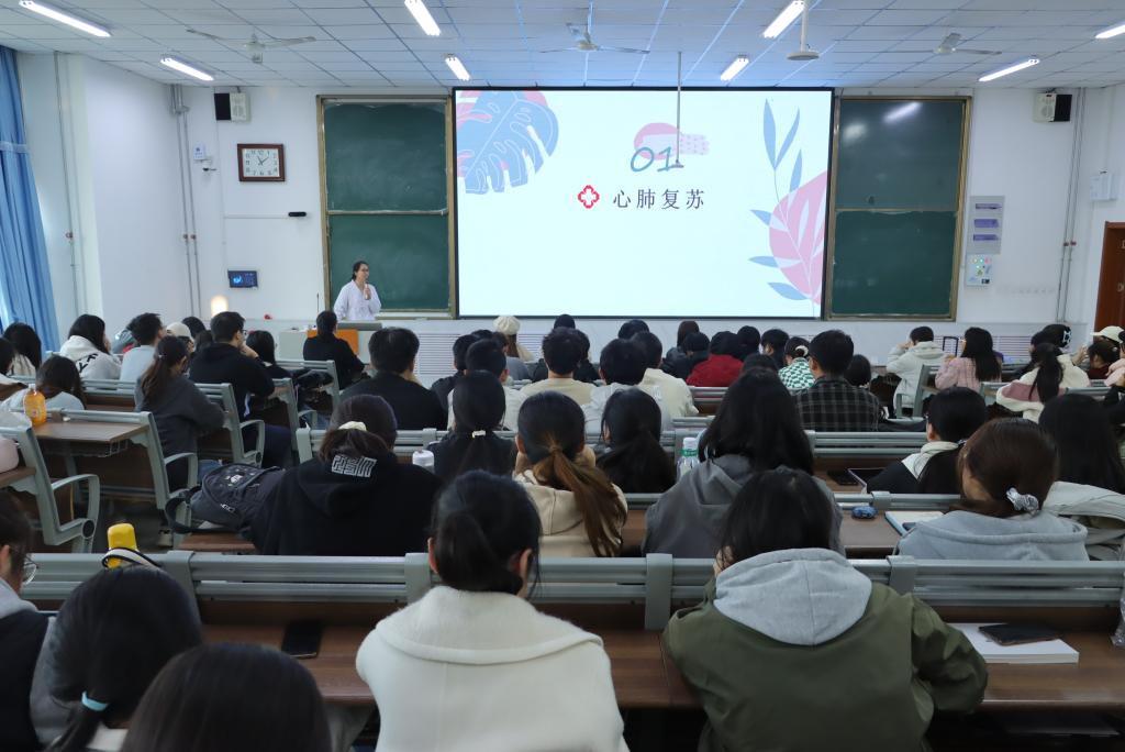 11月13日下午,beat365英国官方网站邀请峄城区古邵镇中心卫生院副主任护师刘祥艳,在增信楼211室做应急救护知识与技能培训,100余名“青马工程”学生骨干、各班级团干部参加。