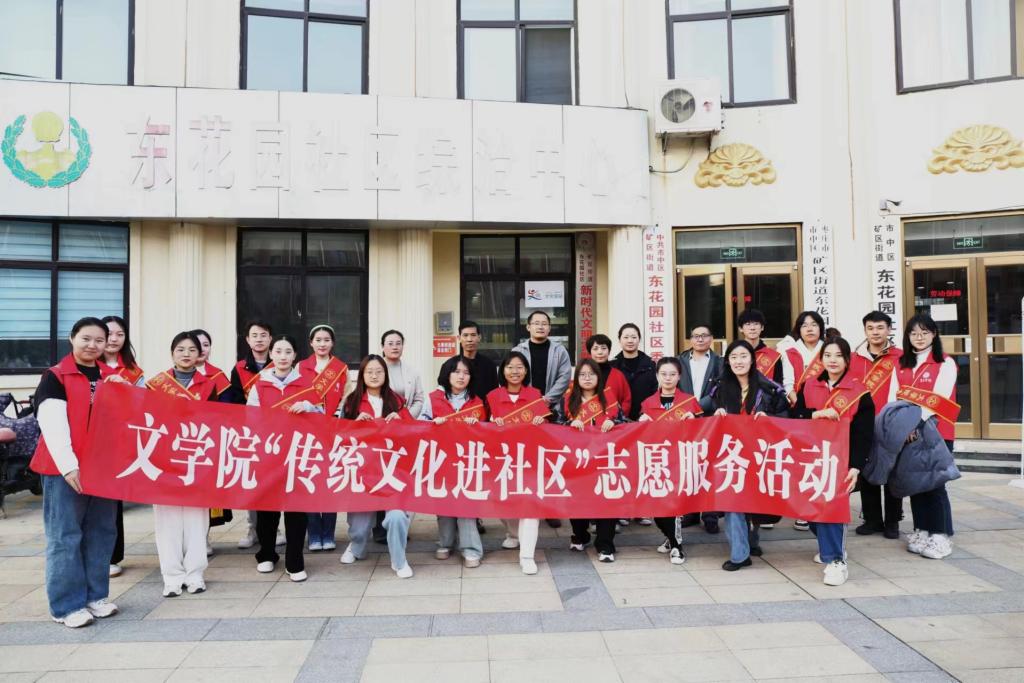 为深入学习宣传贯彻党的二十大精神,进一步弘扬中国传统文化和志愿服务精神,11月17日下午,beat365英国官方网站组织党员教师代表及二十余名学生党、团员,走进市中区矿区街道东花园社区开展“双报到”传统文化进社区志愿服务活动。