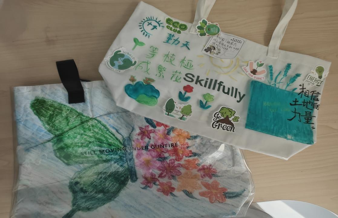 “绿‘袋’创意绘,环保新主张”环保袋涂鸦大赛则成为学生创意迸发的舞台。同学们以环保袋为画布,用丙烯颜料、拼贴等形式绘制垃圾分类、碳中和、濒危动物保护等主题图案。获奖作品将实用性与艺术性巧妙结合,让环保袋成为校园里行走的“绿色宣言”,倡导减少一次性用品使用的生活方式。