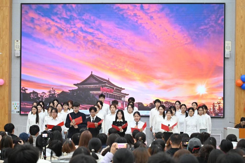 晚会在黑河豚乐队《不再犹豫》的演唱中拉开序幕,舞台光影交错、音乐动感十足,瞬间点燃全场氛围。“青春颂歌”“潮流艺韵”“薪火筑梦”三大篇章层层递进,节目形式多元,创意迭出,台下掌声雷动,喝彩声此起彼伏。