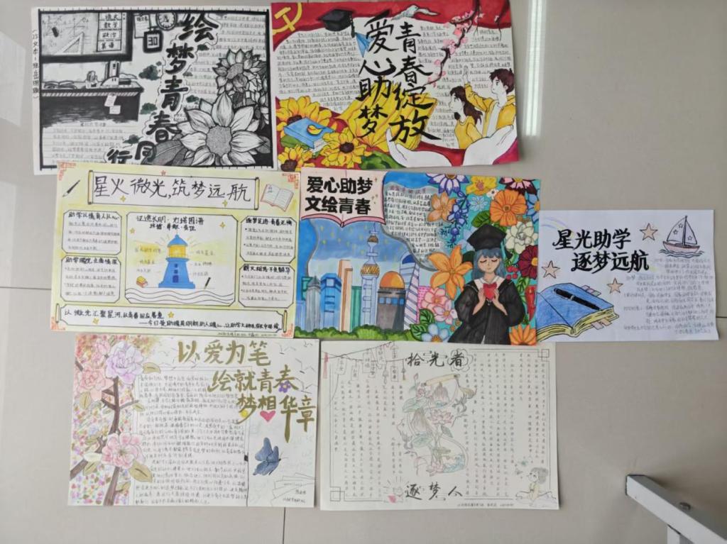 手抄报大赛中,同学们将资助政策的温暖、求学逐梦的决心融入线条色彩,创作出数幅主题鲜明、创意十足的作品。