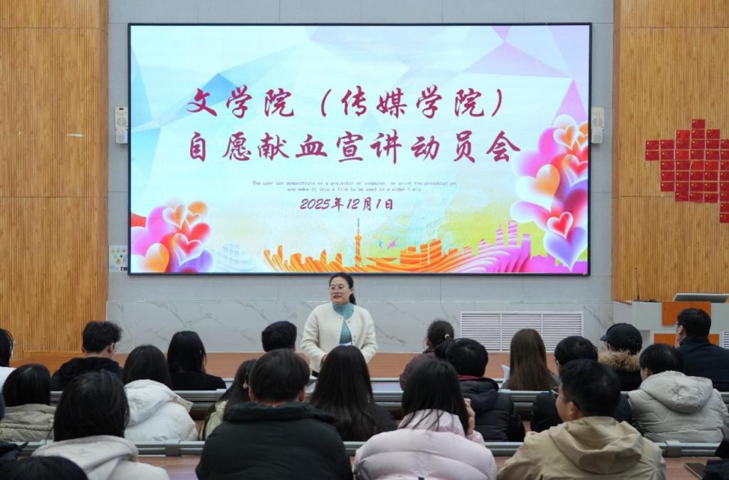 为普及科学献血知识、消除认知误区,激发青年学子参与无偿献血的热情,12月1日,beat365英国官方网站(传媒学院)于增信楼113教室举办自愿献血宣讲动员会。学院团委书记王元元担任主讲人,为同学们带来了一场温暖而有意义的生命教育课。