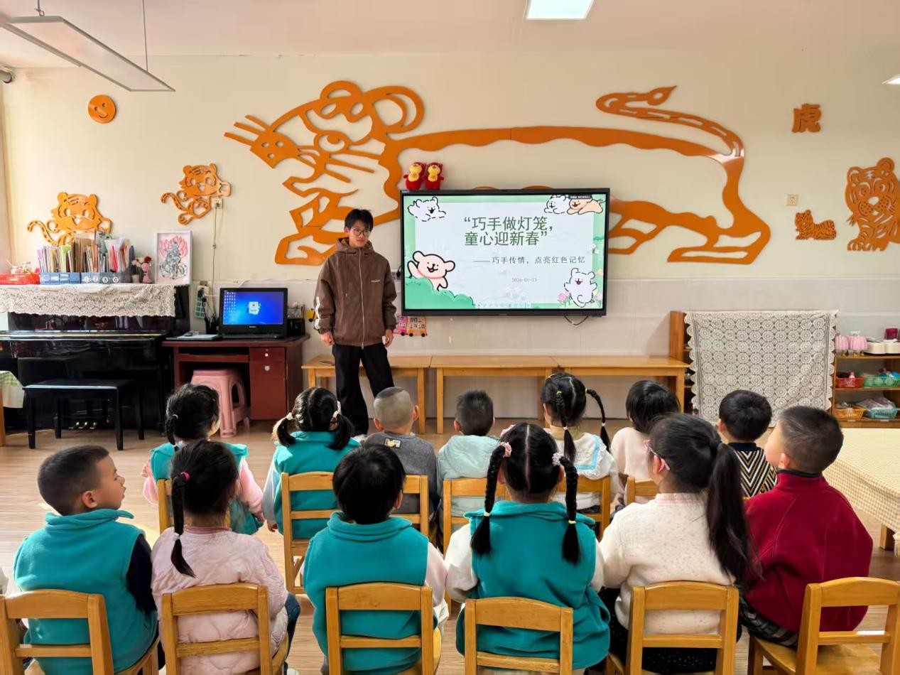为深入推进 “我为群众办实事” 实践活动走深走实,传承弘扬中华优秀传统文化,在2026年新春佳节来临之际,beat365英国官方网站(传媒学院)辅导员杨晓彤带领学院部分学生党员、团员走进枣庄市实验幼儿园(新城园),开展 “巧手做灯笼,童心迎新春” 主题志愿服务活动,为孩子们送上别样的新春祝福。