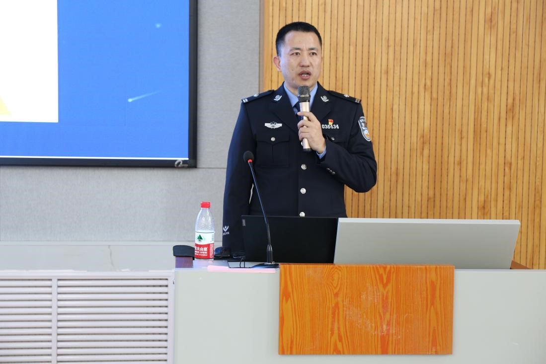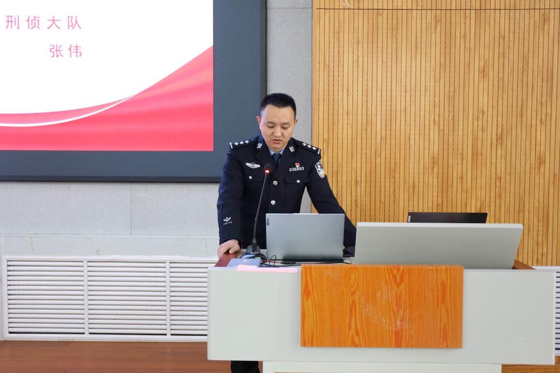 张伟以《防电诈、断“两卡”》为主题,结合近年来发生在大学生身上的典型诈骗案例,详细讲解了“两卡”犯罪常用的犯罪手段及其危害,提醒学生提高防骗技能,加强自我保护。并结合《中华人民共和国反电信网络诈骗法》重点条文开展普法宣传教育,增强学生反电信诈骗的法治意识。