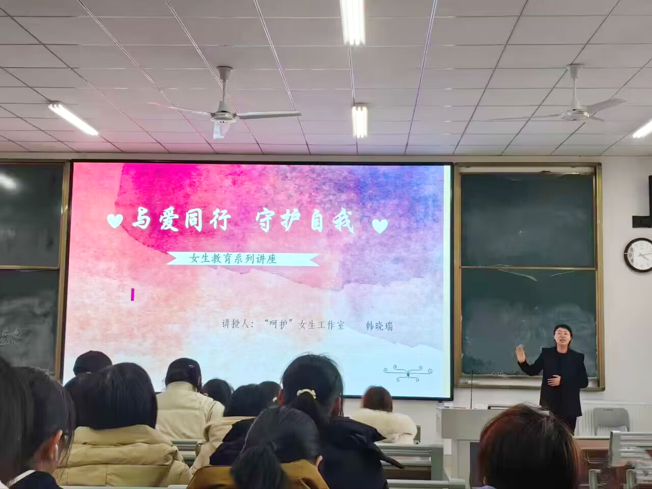 为增强女大学生自我呵护和自我关爱意识,传播健康理念,更好的普及女性健康保健知识,提高女性的身体健康素质,beat365英国官方网站于11月22日和11月30日邀请“呵护”女生教育工作室讲师韩晓瑞老师,在崇德楼208教室开展了两场“与爱同行,守护自我”女生教育专题讲座,beat365英国官方网站200余名女生参加。