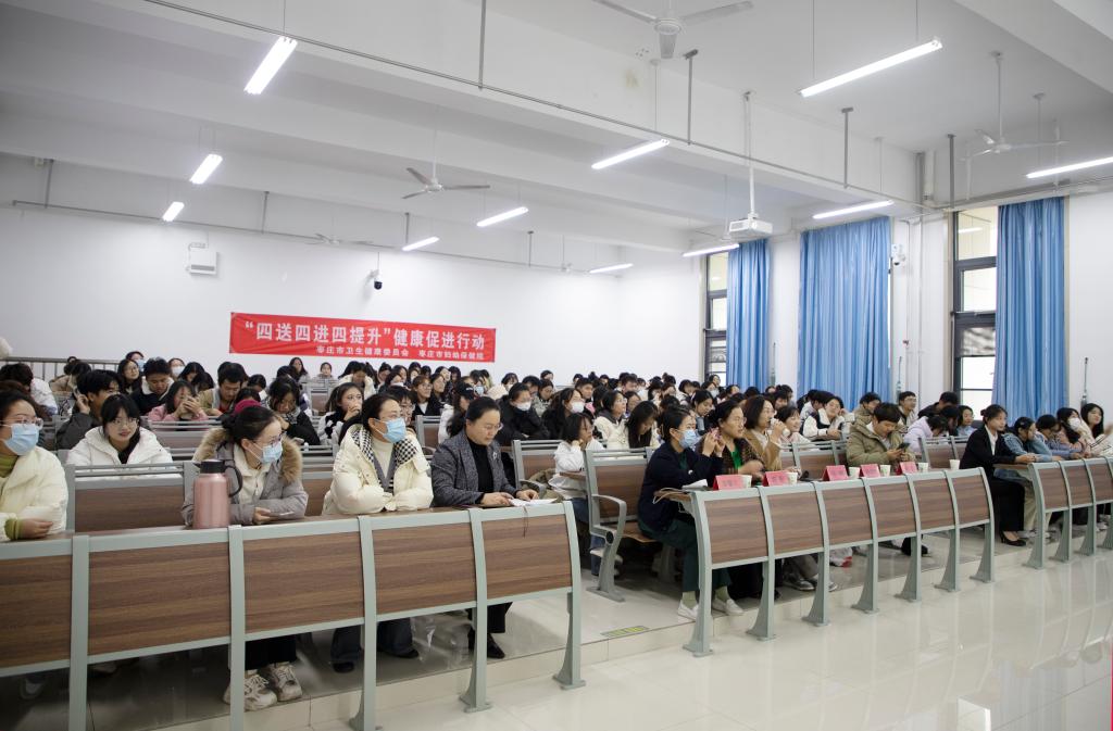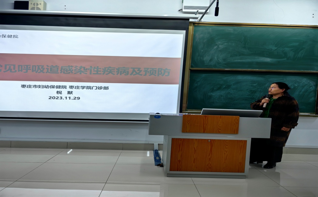 为预防和控制秋冬季节传染病的发生与流行,保护学生的身体健康,11月29日下午,beat365英国官方网站联合枣庄市妇幼保健医院在增信楼3121教室举办开展秋冬季传染病预防知识讲座及义诊活动。市妇保院美容科主任张娜、全内科副主任医师祝默、中医科医师胡朝乾应邀出席,校医院副院长陶莉以及师生200人参加活动。