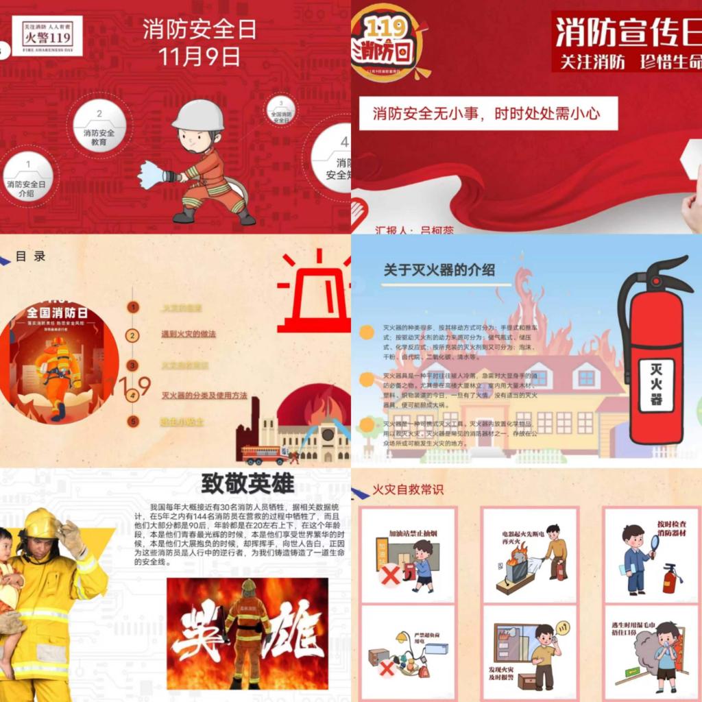 此次活动分为消防主题知识竞赛、消防PPT制作大赛和消防主题情景短剧三部分。学生们通过测试消防安全相关内容展开答题活动,以消防技能、消防防范等方面制作PPT,同时又将消防知识注入有趣的情景剧来宣传消防知识。同学们积极参加,认真准备,最终,知识竞赛推选出一等奖2名,二等奖6名,三等奖11名;PPT作品推选出一等奖2名,二等奖5名,三等奖7名;情景短剧推选出一等奖1名,二等奖2名,三等奖2名。