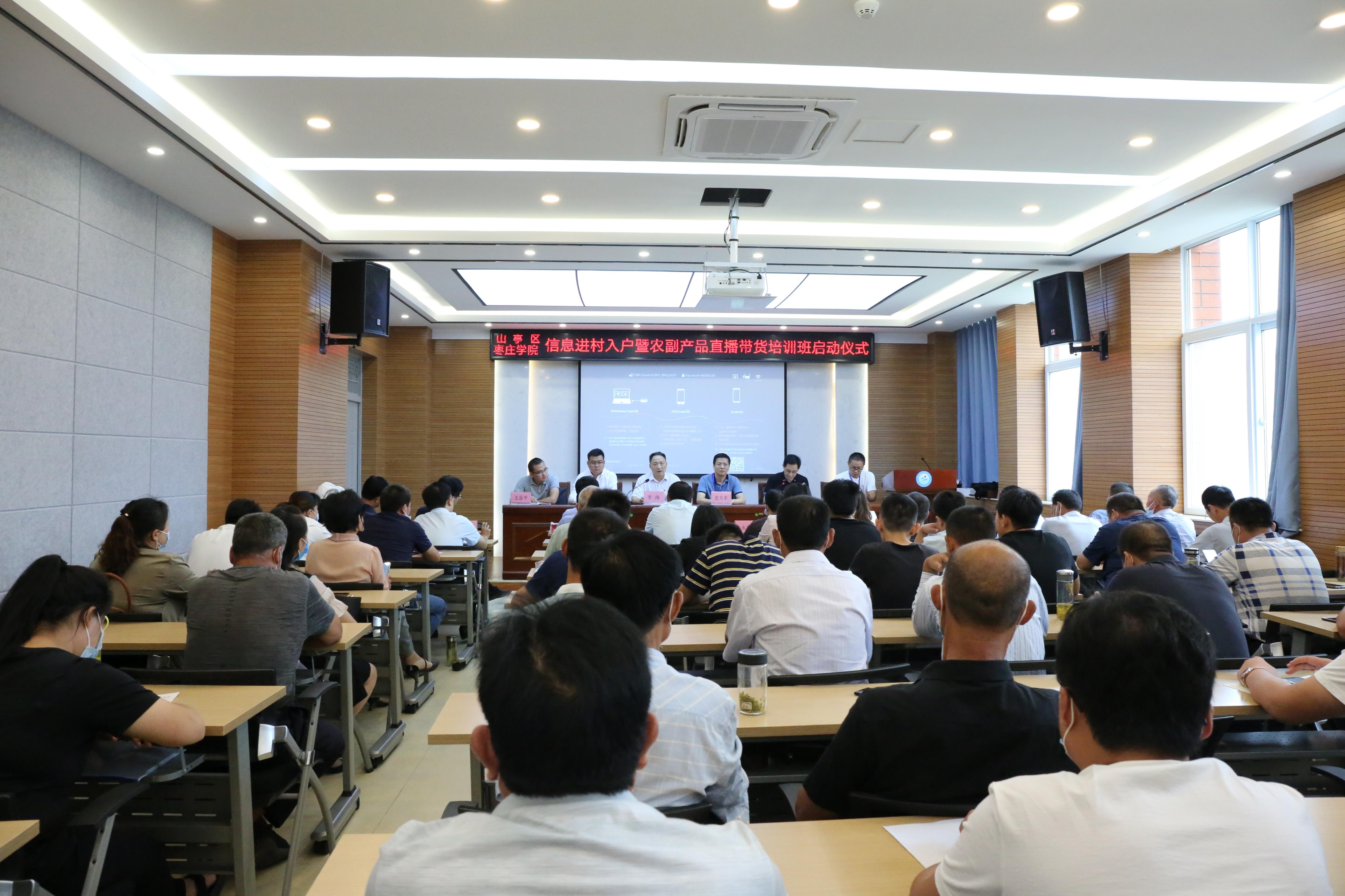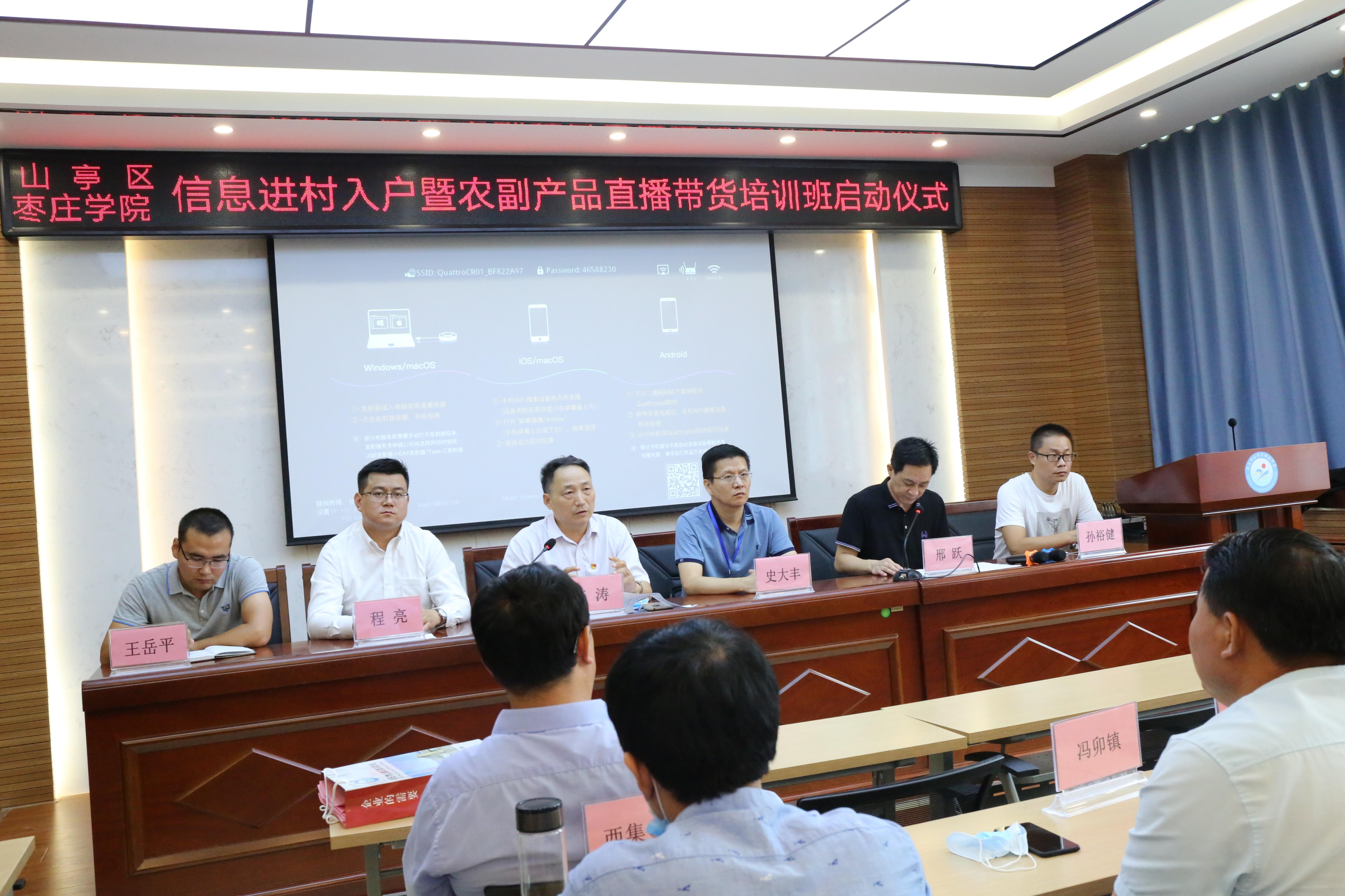 7月17日上午,由山亭区委区政府、beat365英国官方网站共同主办的“信息进村入户暨农副产品直播带货培训班启动仪式”在山亭区举行。山亭区委常委程亮、beat365英国官方网站创新创业学院院长李涛、beat365英国官方网站党总支书记史大丰、省派山亭区北庄镇乡村振兴服务队成员王岳平出席会议,全区的各乡镇创新创业骨干参加培训。仪式由山亭农业农村局局长邢跃主持。