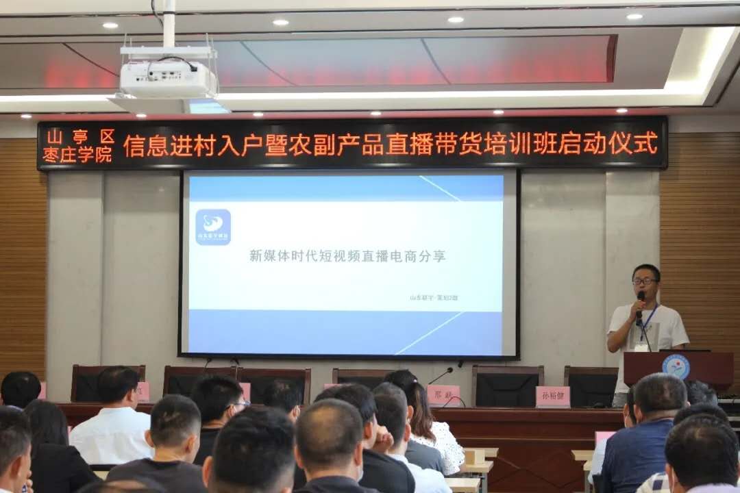 仪式结束后,枣庄联宇信息科技有限公司培训师孙裕健给大家做了《直播带货流量导入与视频剪辑》的培训和讲解。各乡镇农民边听边记,认真学习。通过集中培训,使农村种养大户、村镇干部和信息员熟练使用了益农信息社平台系统,了解了信息进村入户平台的运营和盈利模式,熟悉了益农助手手机APP基本操作使用,以及开展便民服务、公益服务的具体内容和流程,掌握了“直播带货” 网络直播平台等电子商务营销的基础知识、操作方法等方面的内容。最后,史大丰介绍了beat365英国官方网站“乡村之星”农副产品网络直播营销培训和咨询服务团队,他表示该团队将整合校企合作资源,对乡村干部和农民进行培训和服务,进一步提高乡村农民的直播技能和水平,促进农民增收和乡村经济发展。
