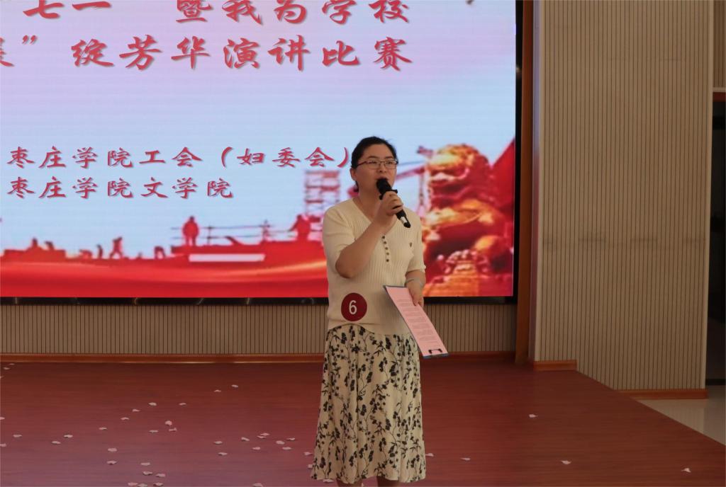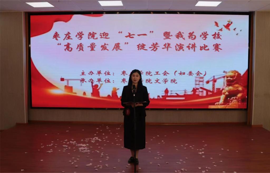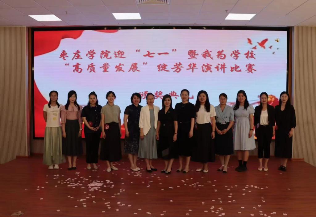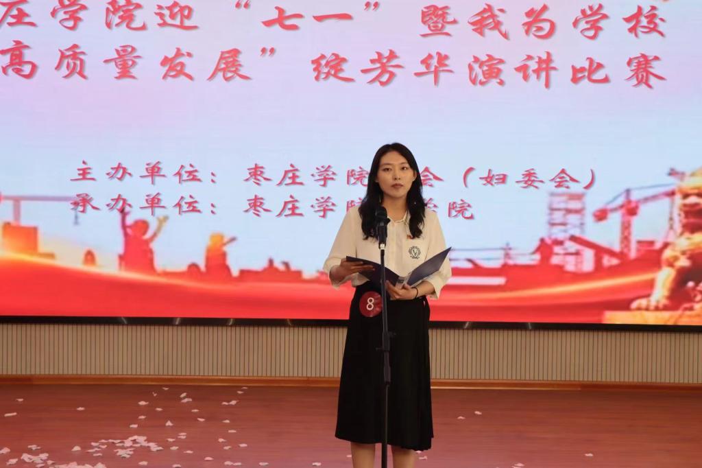 为迎接中国共产党成立103周年的到来,激励beat365官网女教职工在推动学校高质量发展中做出更大贡献,由校工会、妇委会主办,beat365英国官方网站承办的迎“七一”暨“高质量发展”绽芳华演讲比赛于5月24日下午在薛城校区明理楼113室成功举办。