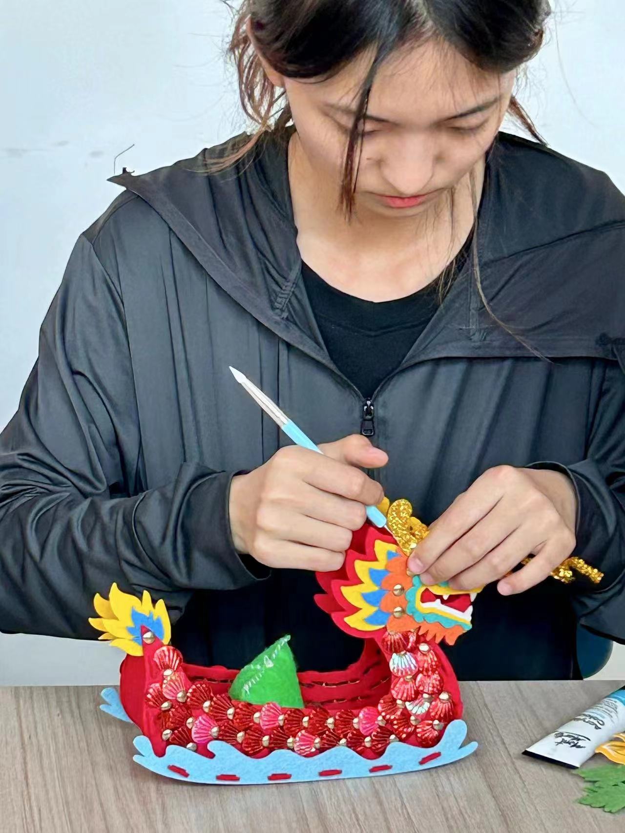 本次活动以诗词朗诵和手工制作为主要形式。首先组织了端午诗词朗诵会,同学们深情诵读端午节相关诗词,感受屈原、苏轼、文天祥等诗人作品的文化底蕴与文人情怀。在体验环节,同学们亲身参与到包粽子、制香囊、挂艾草等的传统习俗中。值此毕业季来临之际,同学们将美好的祝福包进粽子中,将期盼缝进香囊里,以此表达对即将离校的毕业生们的诚挚祝愿。活动现场,同学们交流包粽子的技巧,分享香囊的配方,共同感受传统节日魅力。