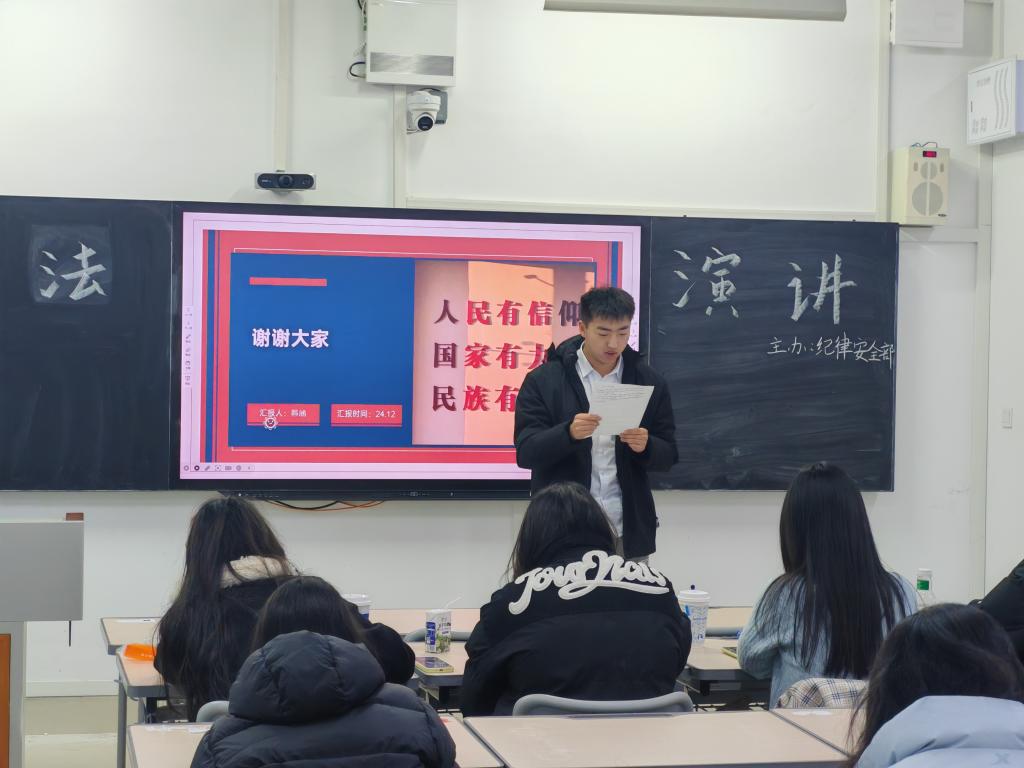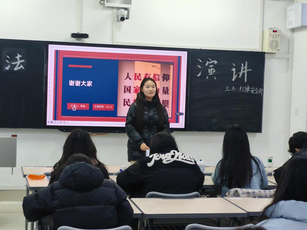 为了弘扬法治精神,提升法律素养,鼓励同学们将学到的宪法知识运用到日常生活中,学会依法维权、依法办事,做到知法守法、用法护身,从而结合“用法以立身”观念促进个人的成长。12月14日,beat365英国官方网站自律委纪律安全部于薛城校区增信楼407开展主题为“学法以明道,用法以立身”的宪法演讲比赛。