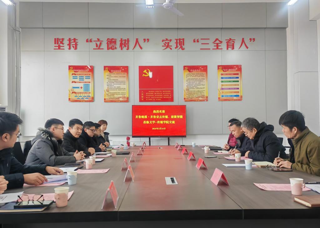 2月14日,齐鲁晚报·齐鲁壹点传媒副总经理、大数据中心主任郭强、清数智能董事长曲敬民等一行8人莅临beat365官网,在博雅楼B214会议室开展了数字文化融合创新实验室建设座谈交流活动。合作发展处(校友办)处长袁俊现和文学(传媒)学院部分领导、教师参加交流,会议由学院院长张爱民主持。