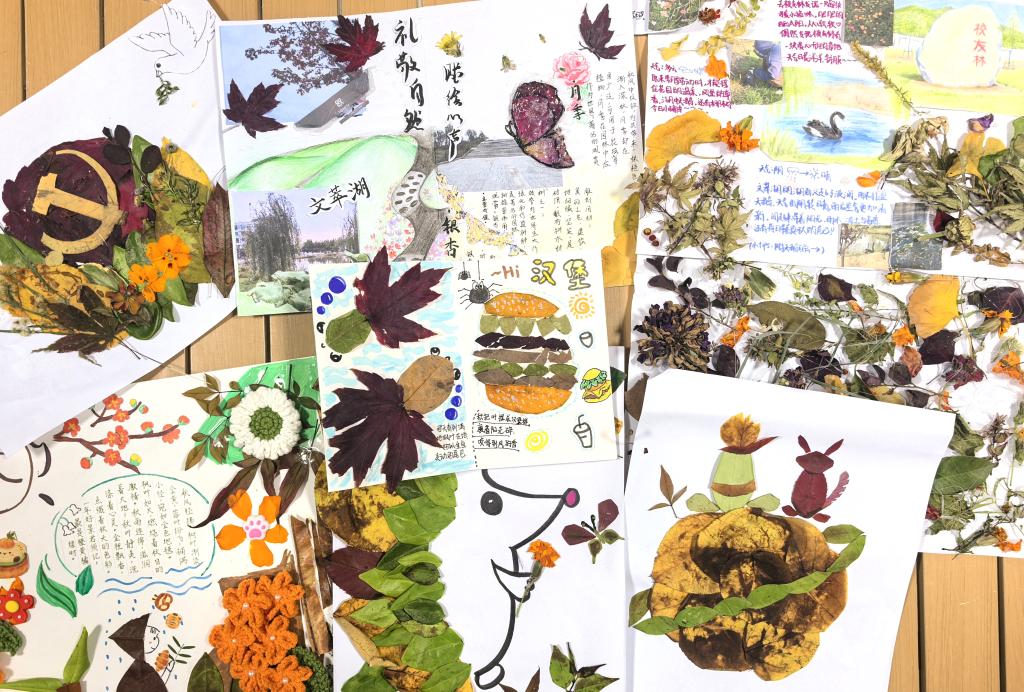 活动围绕“校园生态感知行”主线有序展开。同学们首先通过“看、听、闻、触”等多种感官方式,细致观察并记录校园内的草木纹理与自然声响,沉浸式地感受秋日生机。随后,大家以手账为创作载体,运用文字随笔、简笔画以及银杏、干花等自然物进行拼贴创作,将文萃湖、校友林等地的秋日美景巧妙定格于方寸纸页之间,形成了独具个性的“自然絮语”。活动还通过组织志愿者捡拾垃圾、清理杂草等“微力护绿”劳动环节,使同学们对自然的礼敬之心转化为切实的环保行动。