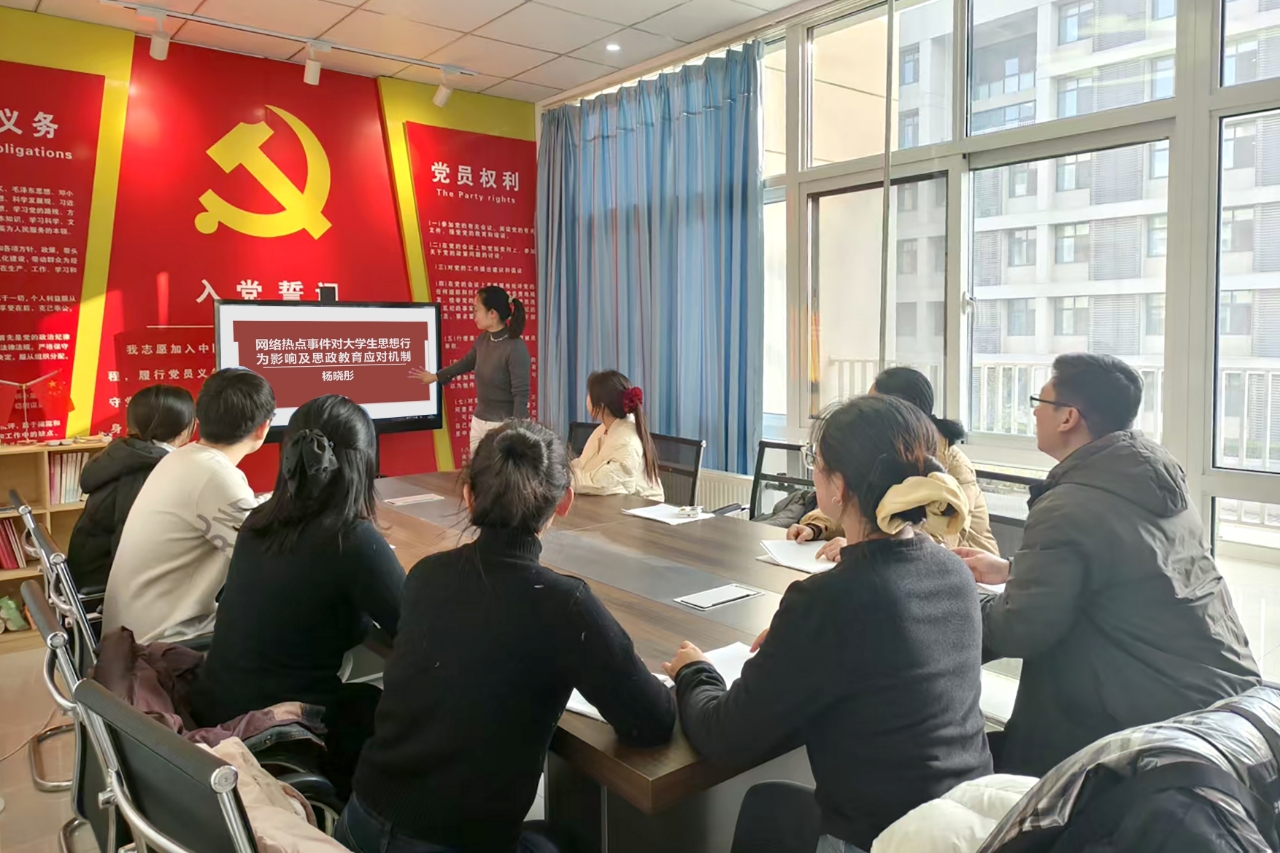 2025年12月8日,beat365英国官方网站(传媒学院)第十二期辅导员沙龙在4号公寓学生一站式社区举行。本期活动由学院辅导员杨晓彤老师担任主讲,聚焦“网络热点事件对大学生思想行为影响及思政教育应对机制”进行专题研讨。