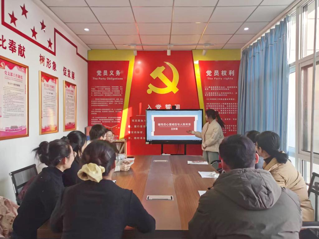 为加强辅导员队伍建设,提升辅导员心理调适与沟通协作能力,12月19日,beat365英国官方网站(传媒学院)于4号公寓310室举办第十三期辅导员沙龙,本期主题聚焦“心理减压与人际关系”,学院全体辅导员参加。