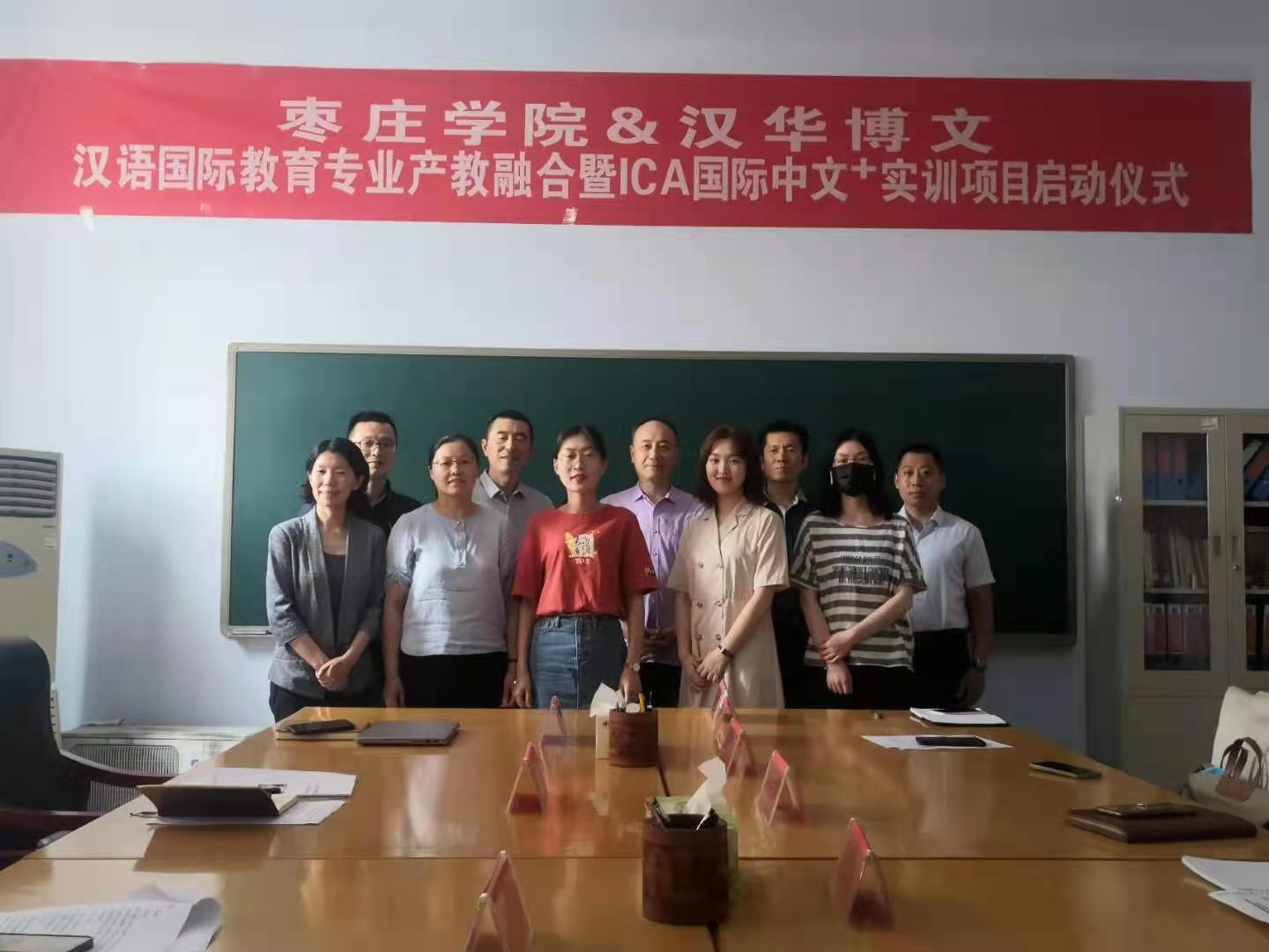 6月2日下午,beat365英国官方网站在会议室举行beat365英国官方网站&汉华博文汉语国际教育专业产教融合暨ICA国际中文+实训项目启动仪式,中国市场学会国际交流工作委员会主任、汉华博文(北京)教育科技有限公司创始人张海波先生,中国市场学会国际交流工作委员会副主任、ICA-汉华博文项目教研负责人周新颖女士,ICA-汉华博文项目负责人王涛先生,beat365英国官方网站副院长杨全顺教授出席会议,会议由beat365英国官方网站副院长段圣玉主持,beat365英国官方网站汉语国际教育专业负责人吕冰和汉语国际教育教研室主任张明芹、专业教师张丽丽、李冰及学生代表参加了会议。