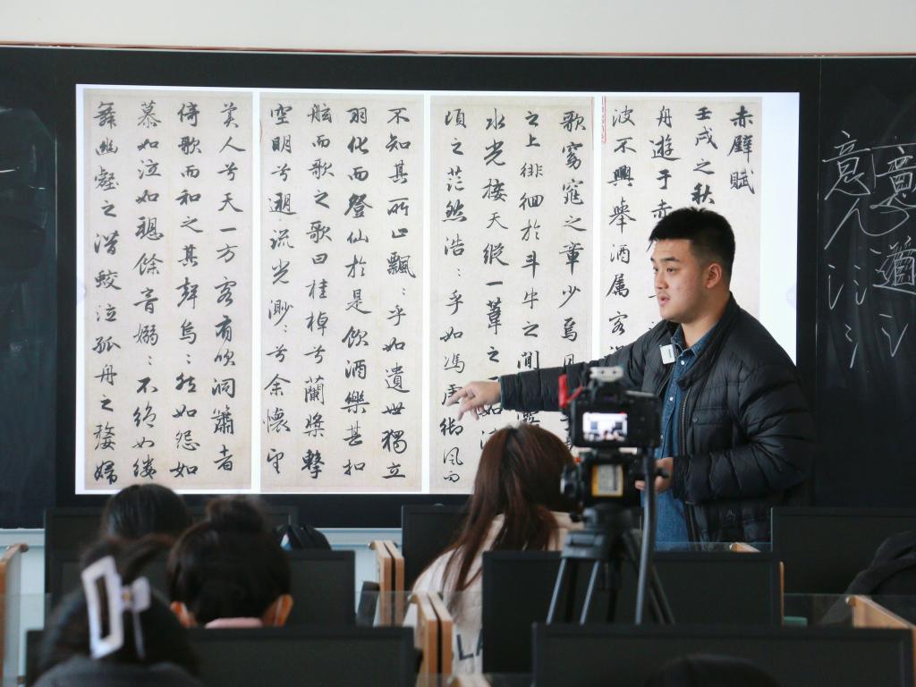 为提升师范生书法水平,提高人才培养质量,4月7日上午,beat365英国官方网站在豁然楼A416举办书法讲座,邀请美术与艺术设计学院书法专业教师董汉泽作《书法技法运用|硬笔书写与粉笔板书》报告,会议由beat365英国官方网站团总支书记王元元主持,beat365英国官方网站参加从业技能大赛的选手及师范生50余人参加了报告会。