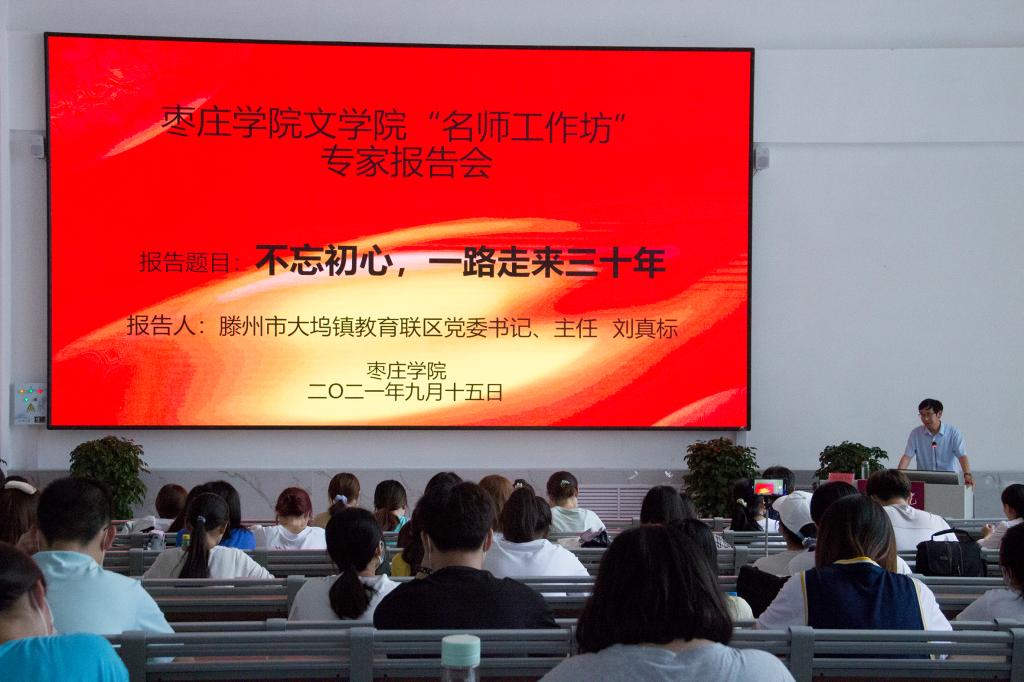 刘真标书记以《不忘初心,一路走来三十年》为题做了一场精彩的报告。在报告中,刘真标书记结合自己的生活和工作经历,讲述了自己的教师梦从启蒙到确立的过程,并将教学与管理经验分享给在座师生。他详细介绍了“一三九工作思路”,讲述了要注重社团品牌化建设和辅导教师队伍建设,展示了学校为培养学生举办的重足社、重文社等社团;教育莘莘学子教书育人要有责任感,要有团队意识,学会感恩,厚德育人。他的报告,深入浅出、情深意切,使在场师生深受感染,更加深刻地理解了教育为何、如何教育。
