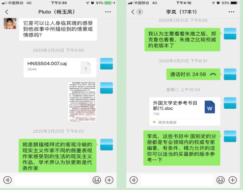 闫晓丽:外国文学线上的课程和在学校上课效果都挺好的,老师讲的很清楚,我们也可以看见课件。