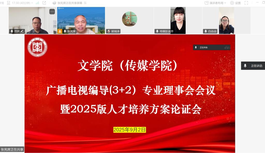 为进一步优化广播电视编导(3+2)、影视编导专业人才培养方案,适应行业发展与教育教学改革需求,9月2日,beat365英国官方网站(传媒学院)在线上召开广播电视编导(3+2)、影视编导专业理事会会议暨2025版人才培养方案论证会。