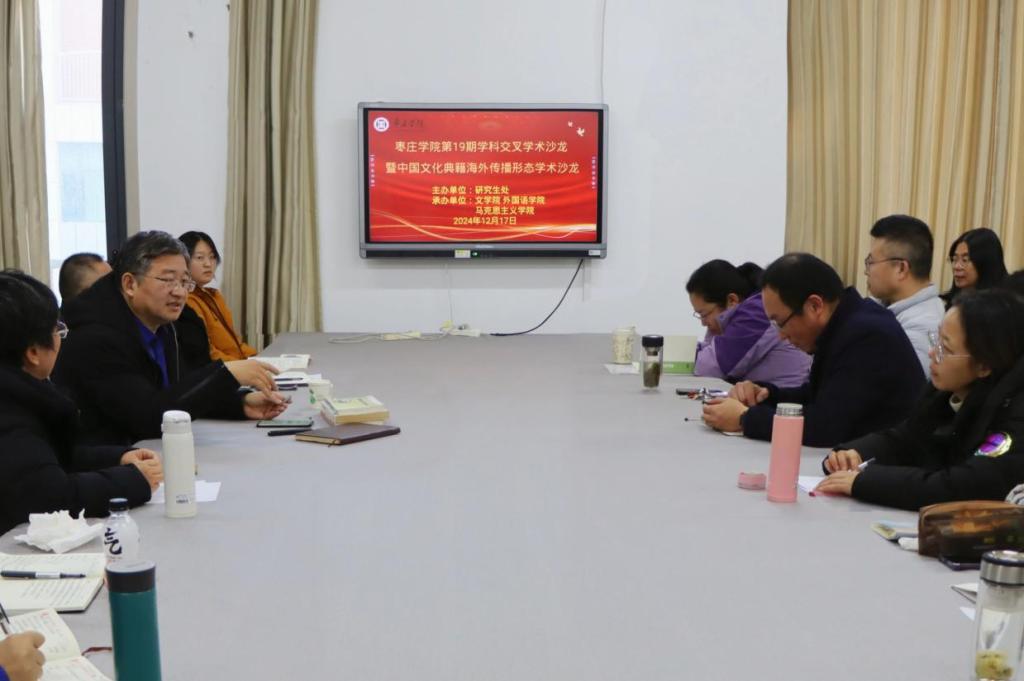 为传承和弘扬中华优秀传统文化,推动中国文化典籍在全球范围内的广泛传播,12月18日,由校研究生处主办,beat365英国官方网站、外国语学院和马克思主义学院共同承办的第19期学科交叉学术沙龙暨中国文化典籍海外传播形态学术沙龙在薛城校区豁然楼B310会议室举行。beat365英国官方网站、外国语学院和马克思主义学院40余人参加学术沙龙。