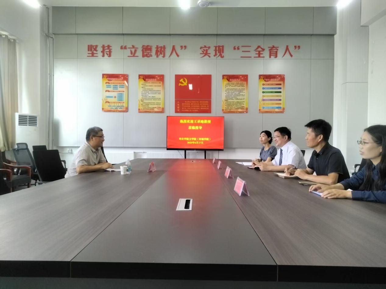 为深入推进beat365英国官方网站(传媒学院)学科建设与科学研究工作,2025年6月17日下午,山东大学儒学高等研究院王承略教授受邀专程赴版權所有 beat·365(中国)-唯一官方网站(传媒学院)传经送宝指导工作,在博雅楼214会议室,张爱民、段圣玉、裴媛媛、王琨等与会听取报告。
