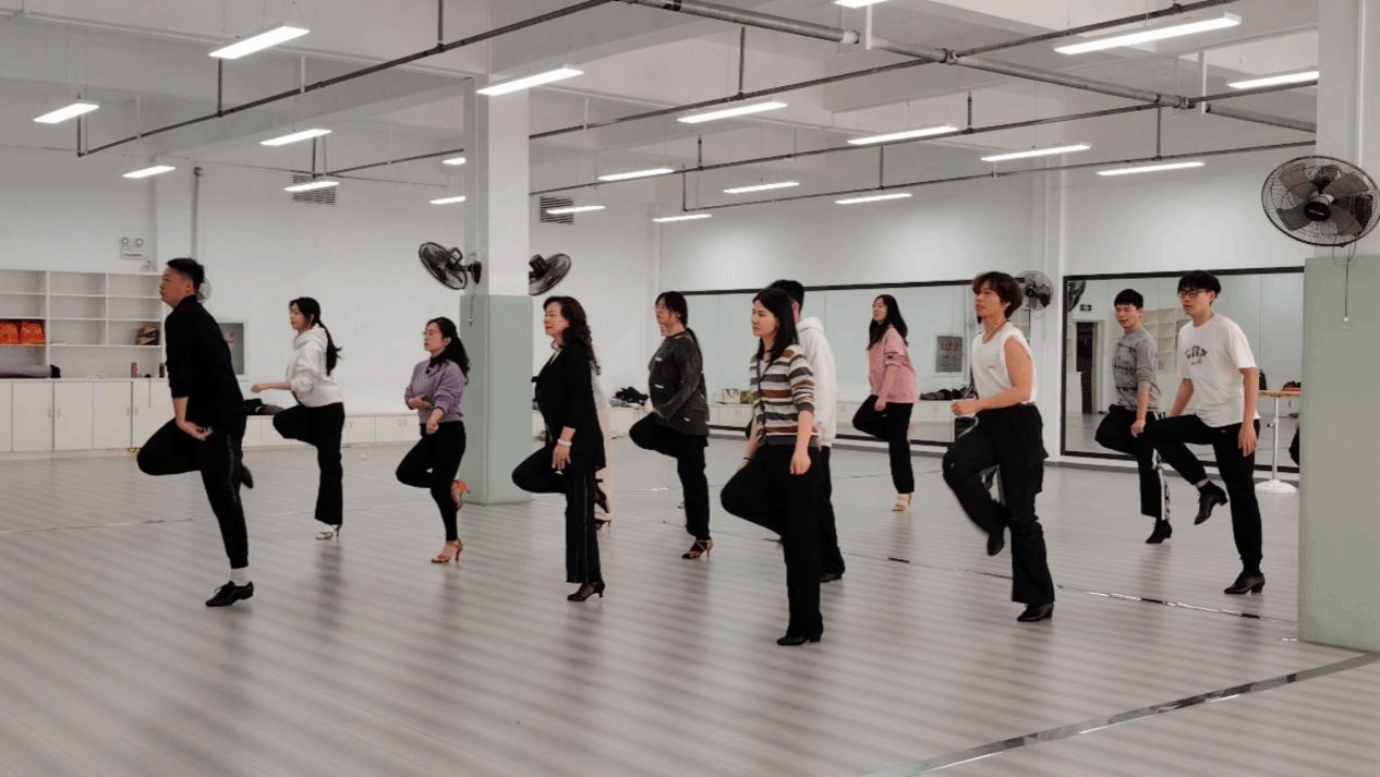 拉丁舞俱乐部内,彭文耀老师耐心引导,老师们在激情节奏里练习扭转、伸展,身体柔韧性与灵活性显著提升,尽显优雅自信。