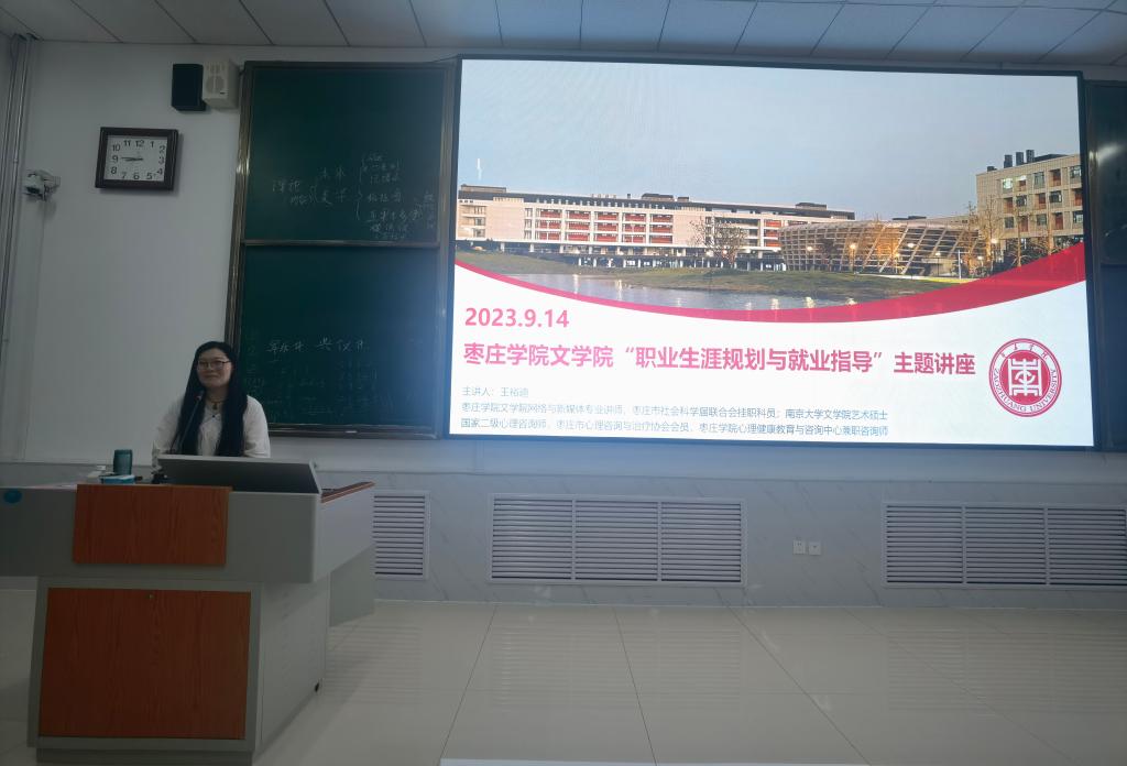 9月14日晚,beat365英国官方网站于增信楼112教室举办了一场“职业生涯规划与就业指导”学生班会专题讲座。讲座由副书记华莹主持,特邀本院专任教师、国家二级心理咨询师王裕迪为主讲人,根据专业特性与时代发展的形势与政策进行分享交流。全体2021级网络与新媒体专业学生聆听此次讲座。