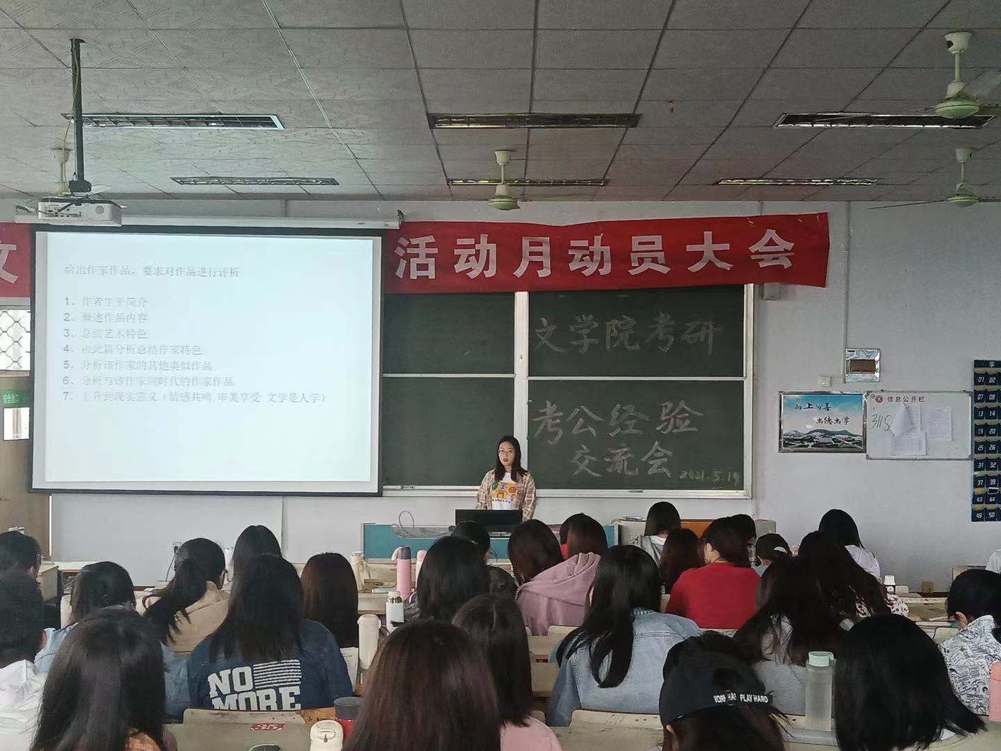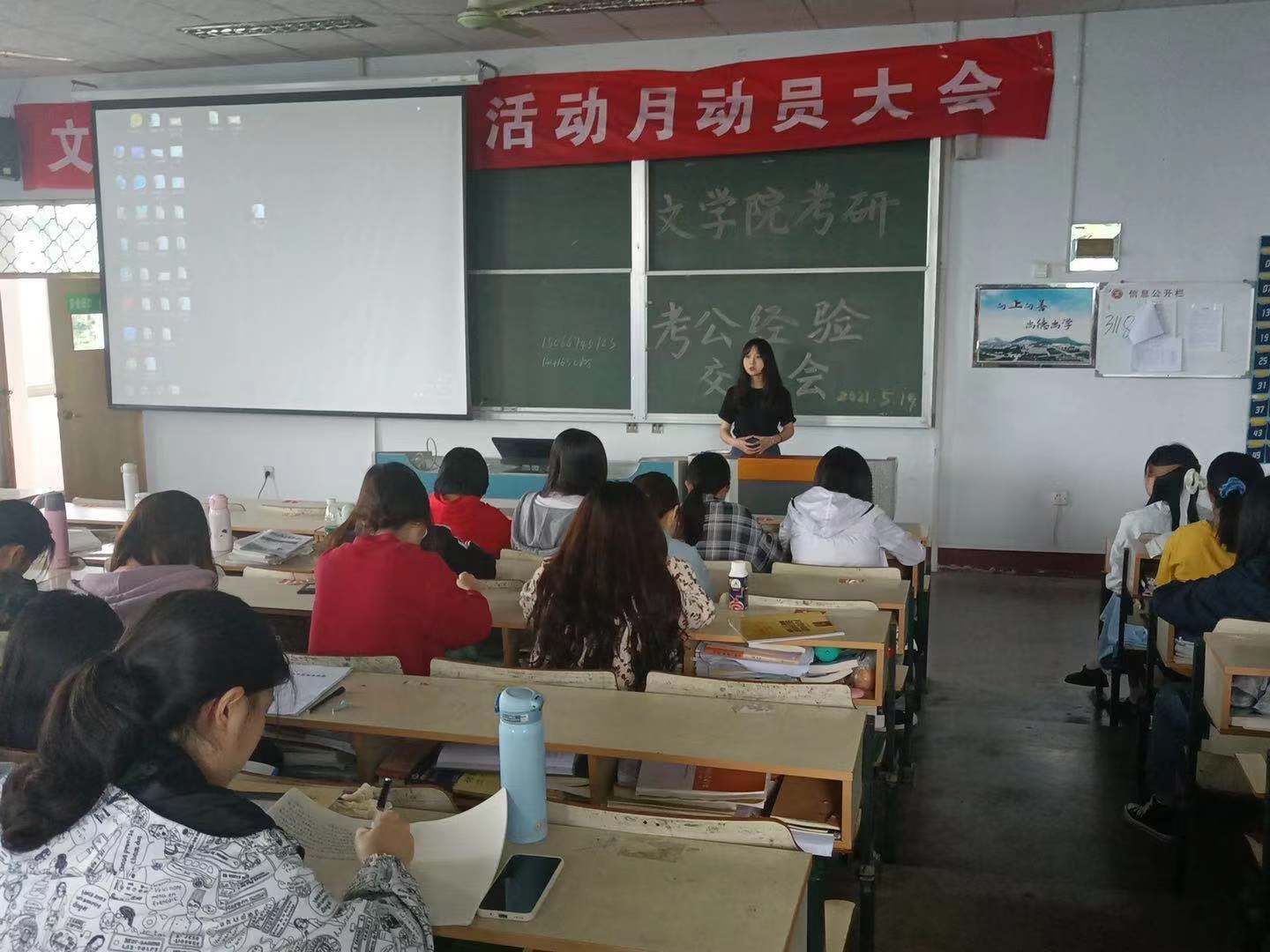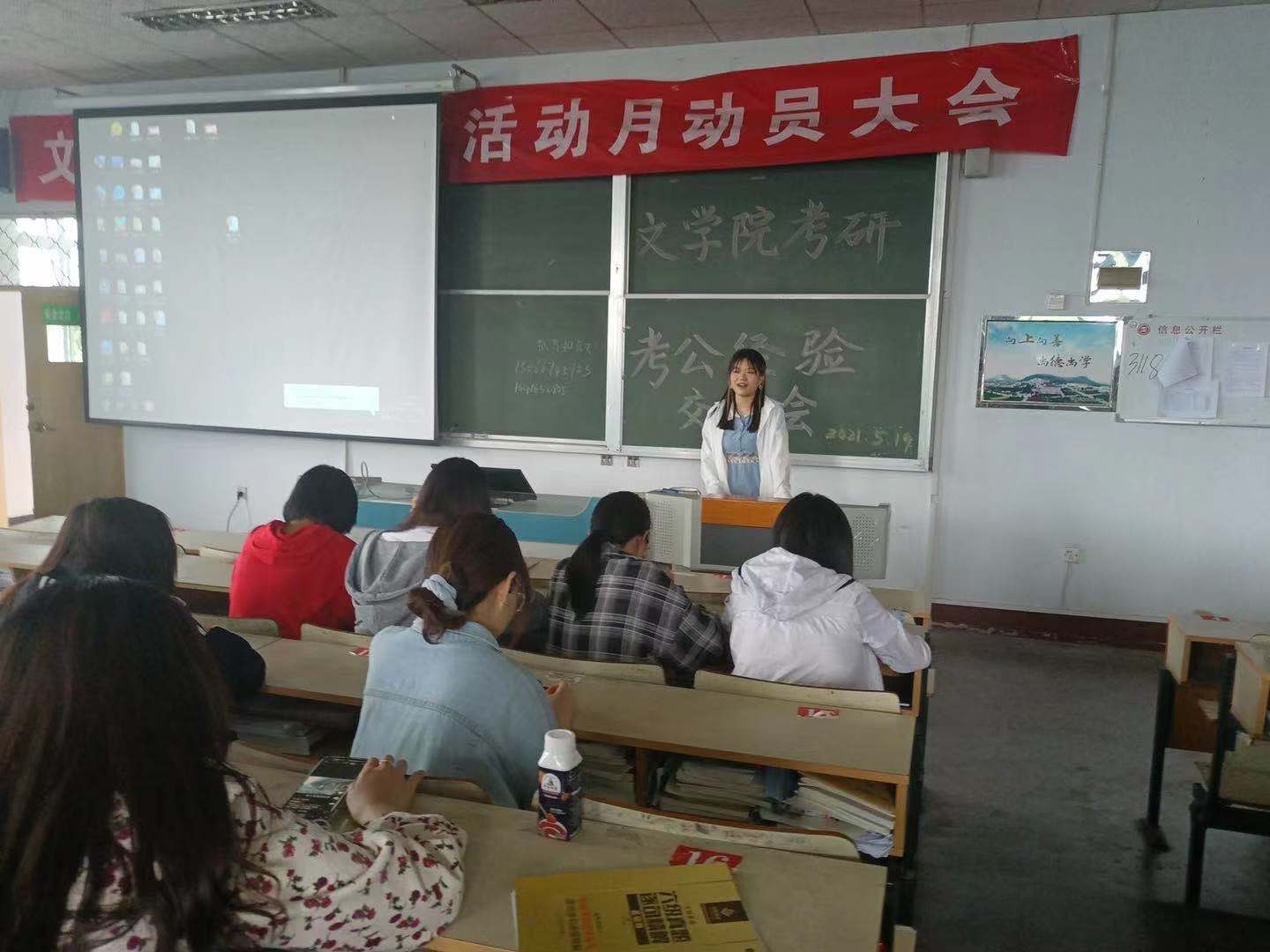 5月19日下午,beat365英国官方网站于文科楼217教室举办考研考公经验交流会,交流会邀请了我院2021届优秀学子许文雪、李会茹、周璇、关俊喜主讲,beat365英国官方网站200余名学生到场参加。
